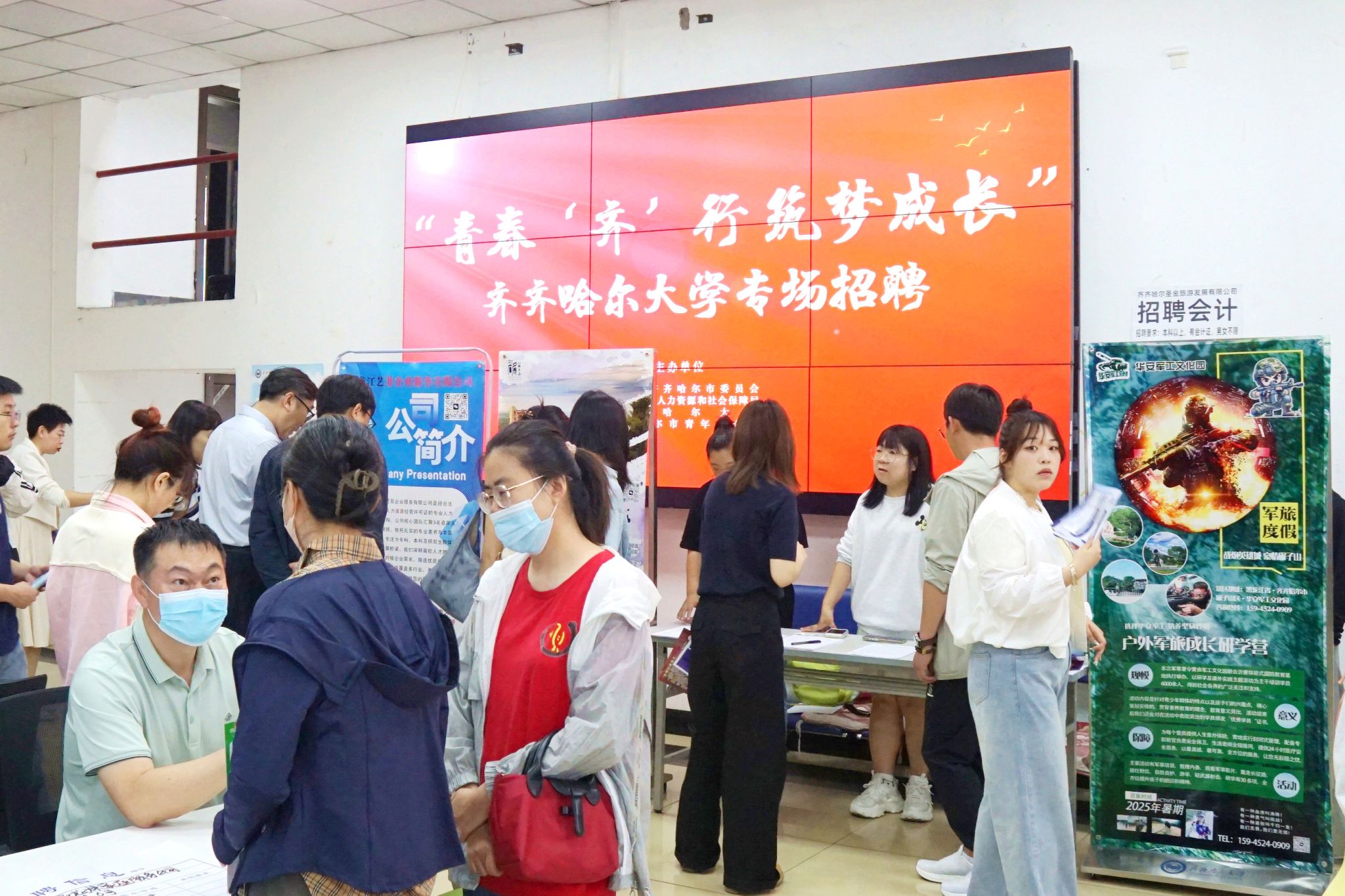6月12日,由共青團齊齊哈爾市委員會、齊齊哈爾市人力資源和社會保障局主辦,我校承辦“青春‘齊’行 筑夢成長”齊齊哈爾大學專場招聘活動在學生指導中心舉辦。齊齊哈爾市委副書記劉振江,團市委書記王剛,學校黨委書記丁宏、黨委副書記張文治,市委市政府相關部門、學校相關單位負責人,2025屆、2026屆輔導員及畢業(yè)生參加雙選會。