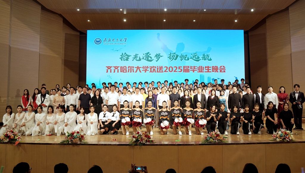 歌伴舞《青春》演繹了畢業(yè)學(xué)子初入齊大的青澀時(shí)光,歌曲串燒《最初的夢(mèng)想》等為青春的航程吹響了奮進(jìn)的號(hào)角,健美操《飛揚(yáng)的青春》詮釋了青春的活力與拼搏精神,歌曲《任我》表達(dá)了齊大學(xué)子對(duì)未來(lái)的無(wú)限憧憬與堅(jiān)定信念,情景朗誦《閃耀吧,青春的火光》重溫了青春的熾熱與溫暖,舞蹈串燒《我的紙飛機(jī)》等表達(dá)了畢業(yè)生們對(duì)母校、對(duì)老師、對(duì)同學(xué)的依依不舍之情,歌伴舞《鳳凰花開(kāi)的路口》為美好的校園時(shí)光畫(huà)上了溫馨的注腳,由畢業(yè)班輔導(dǎo)員帶來(lái)的詩(shī)朗誦《湖畔鶴鳴青春?jiǎn)⒑健纺Y(jié)著母校對(duì)畢業(yè)同學(xué)的牽掛,齊大原創(chuàng)歌曲《今生離不開(kāi)你》已然成為齊大人的情感紐帶,詩(shī)朗誦《齊大頌》激勵(lì)學(xué)子們傳承齊大精神,為建設(shè)有特色高水平應(yīng)用型綜合性大學(xué)貢獻(xiàn)力量。