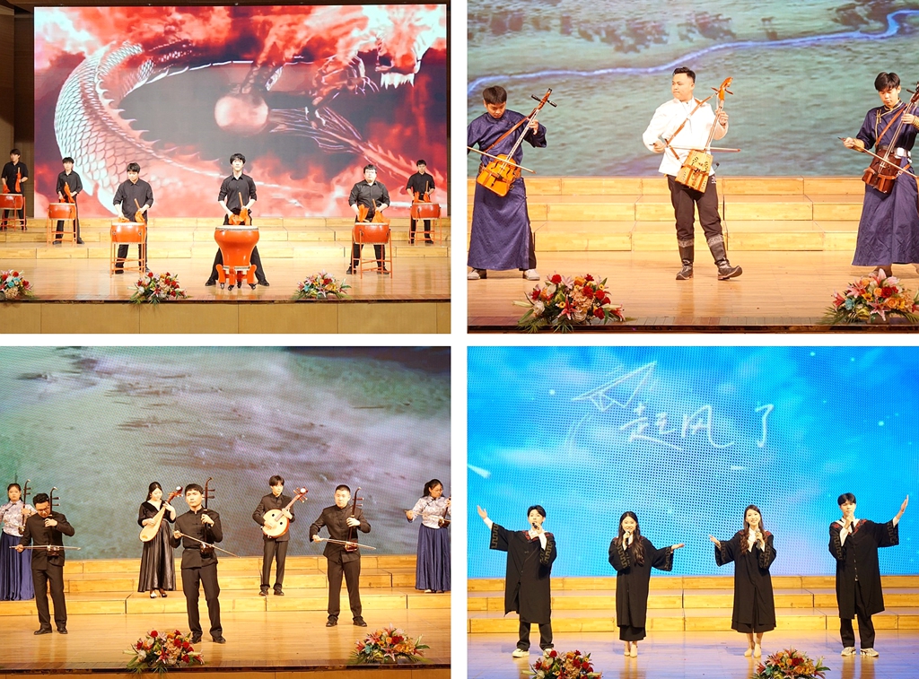 晚會(huì)在鏗鏘激昂的鼓點(diǎn)聲中拉開(kāi)了序幕。演出以“啟航:青春初綻,齊大夢(mèng)起”“助航:齊大情深,溫暖同行”“遠(yuǎn)航:逐夢(mèng)齊大,揚(yáng)帆遠(yuǎn)行”3個(gè)篇章共同編織起畢業(yè)生在齊大的青春旅程,見(jiàn)證他們的成長(zhǎng)蛻變,激勵(lì)他們帶著母校的祝福奔赴未來(lái)。