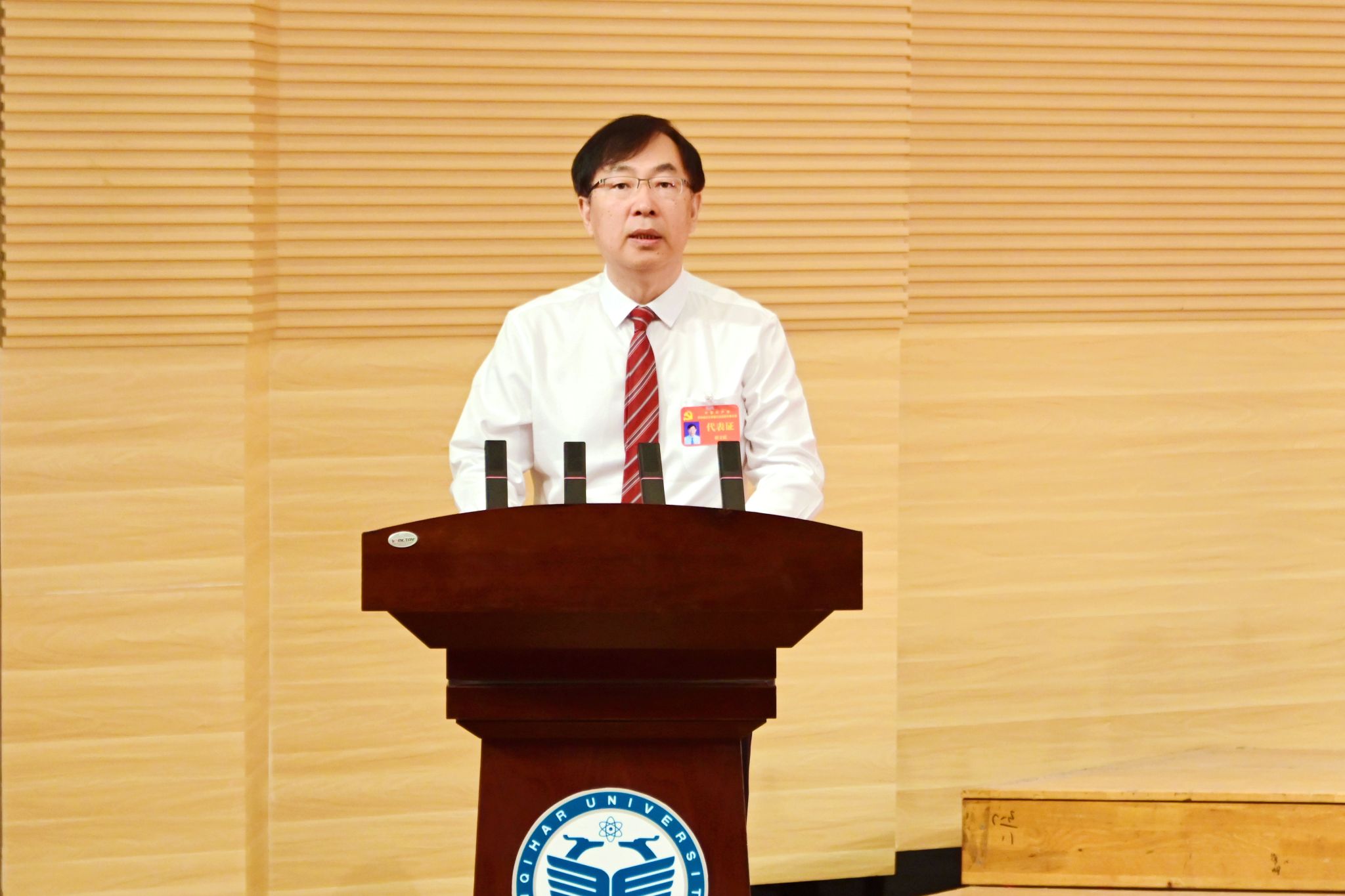 丁宏同志代表中國共產(chǎn)黨齊齊哈爾大學第二屆委員會作了題為《錨定新目標啟航新征程為建設國內(nèi)一流應用型綜合性大學而奮斗》的工作報告。報告共分為三部分:學校第二次黨代會以來的工作回顧;認清形勢,明確目標,科學謀劃高質(zhì)量發(fā)展新藍圖;高舉旗幟,勇?lián)姑?,奮力開創(chuàng)學校黨的建設新局面。