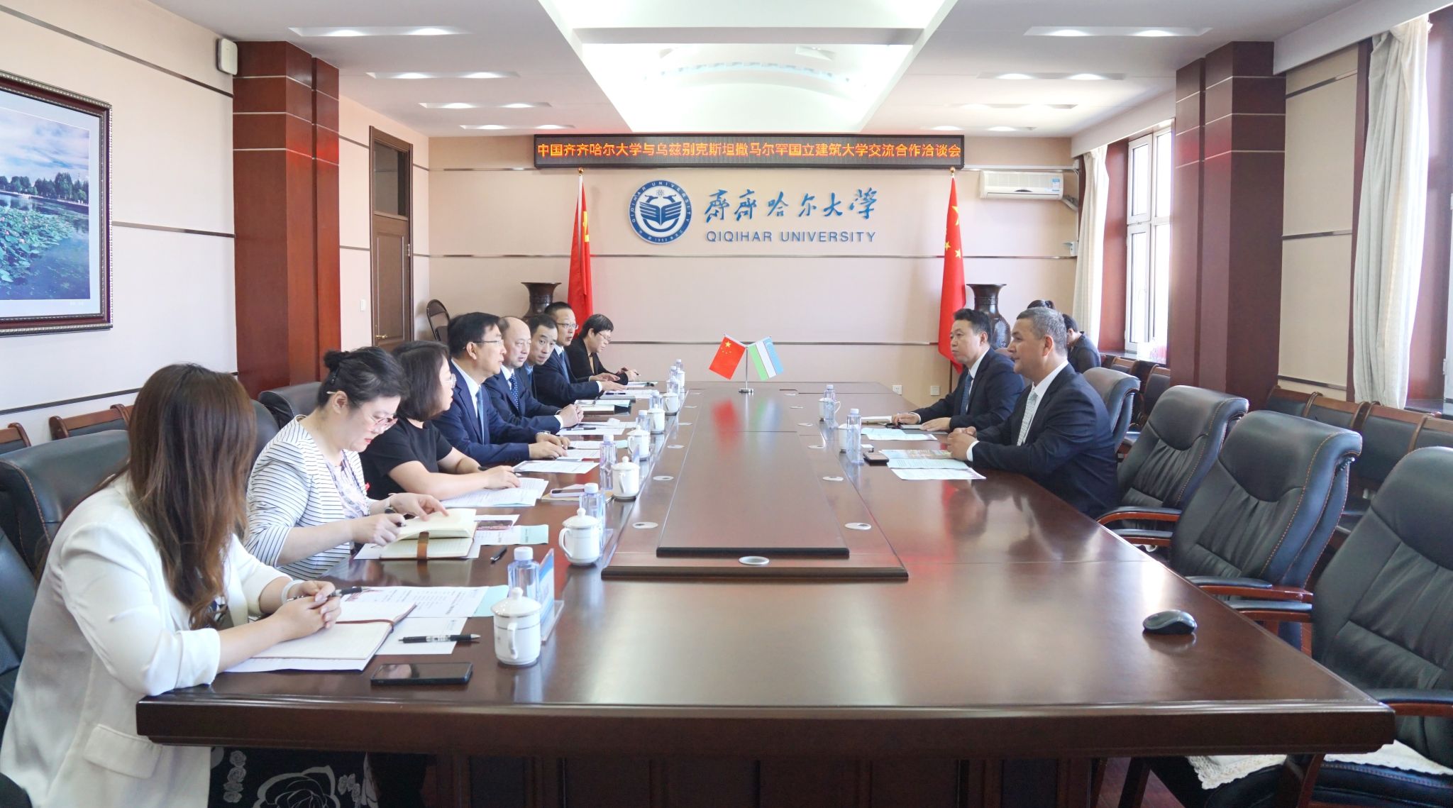 郝文斌代表學(xué)校對(duì)烏茲別克斯坦撒馬爾罕國(guó)立建筑大學(xué)到訪表示熱烈歡迎!他簡(jiǎn)要介紹了我校發(fā)展建設(shè)歷程與特色優(yōu)勢(shì)。他強(qiáng)調(diào),撒馬爾罕國(guó)立建筑大學(xué)作為“一帶一路”倡議沿線上的高校,與我校在推動(dòng)“一帶一路”教育合作領(lǐng)域有著廣闊空間,對(duì)于深化烏中文化交流合作,推動(dòng)文明互鑒,必將產(chǎn)生積極影響,孕育豐碩合作成果。