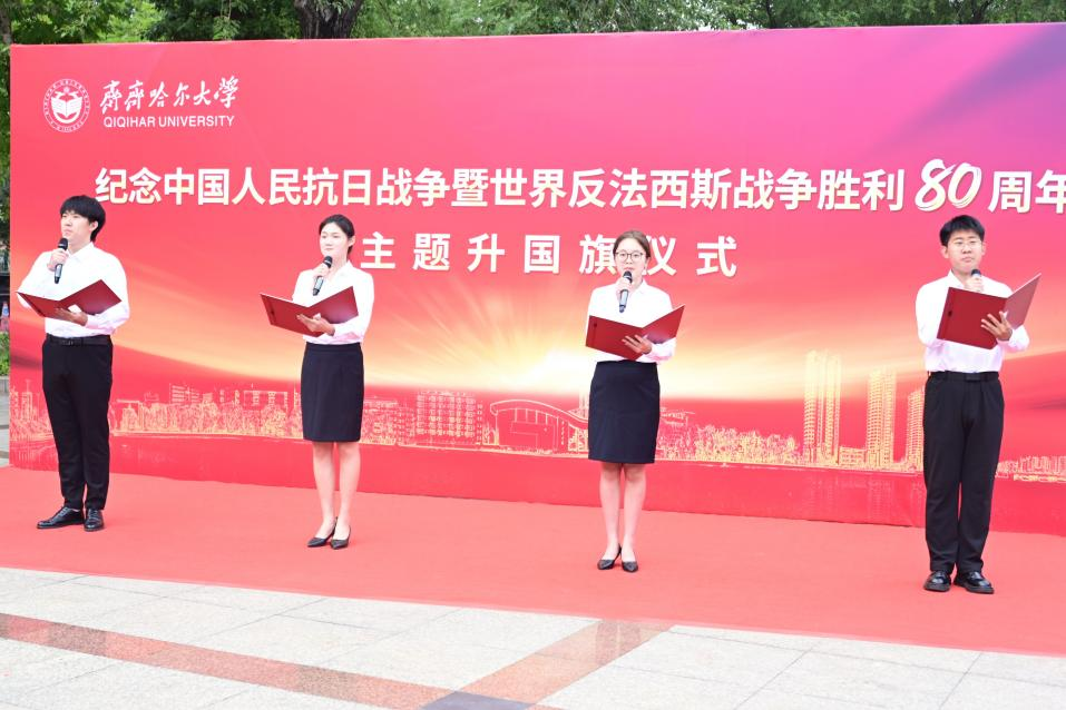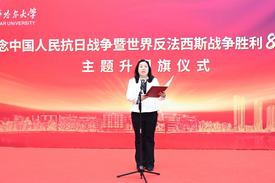 校黨委書記丁宏以“銘記歷史守初心 薪火相傳啟新程”為題,主講“國旗下的開學第一課”。她指出,五星紅旗是先烈熱血染就的信仰火炬,昭示著以天下興亡匹夫有責的愛國情懷、視死如歸寧死不屈的民族氣節(jié)、不畏強暴血戰(zhàn)到底的英雄氣概、百折不撓、堅忍不拔的必勝信念為核心的偉大抗戰(zhàn)精神,這份精神是激勵我們前行的永恒動力。她強調,齊大73載辦學歷程鐫刻著從“艱苦奮斗”到“守正創(chuàng)新”、從“奉獻邊疆”到“引領未來”的紅色基因,這是青年成長的堅實根基。她對廣大齊大學子提出三點期望:一是當以根鑄魂,永葆赤子之心。從校史中延安精神鑄就的辦學底色汲取力量,傳承“越是艱險越向前”的堅韌意志。二是當以行踐諾,深植家國情懷。學習身邊榜樣,將愛國情懷轉化為“關鍵時刻站得出、平凡崗位干出彩”的實際行動,用青春奉獻告慰先烈,踐行“強國有我”誓言。三是當以責聚力,共赴時代之約。把握學校迎接教育部本科教育教學審核評估、建設國內一流應用型綜合性大學的發(fā)展關鍵期,樹牢“校榮我榮”意識,主動投身教學科研、產(chǎn)教融合、校園建設,在班級、社團、實踐中勇當先鋒,讓個人成長與學校發(fā)展、民族復興同頻共振。和平是先輩用鮮血換來的尊嚴,紀念歷史貴在奮進。她號召,全體師生要讓愛國主義的火炬照亮新征程,以實際行動奮力譜寫無愧于時代、無愧于人民、無愧于歷史的齊大新篇章!