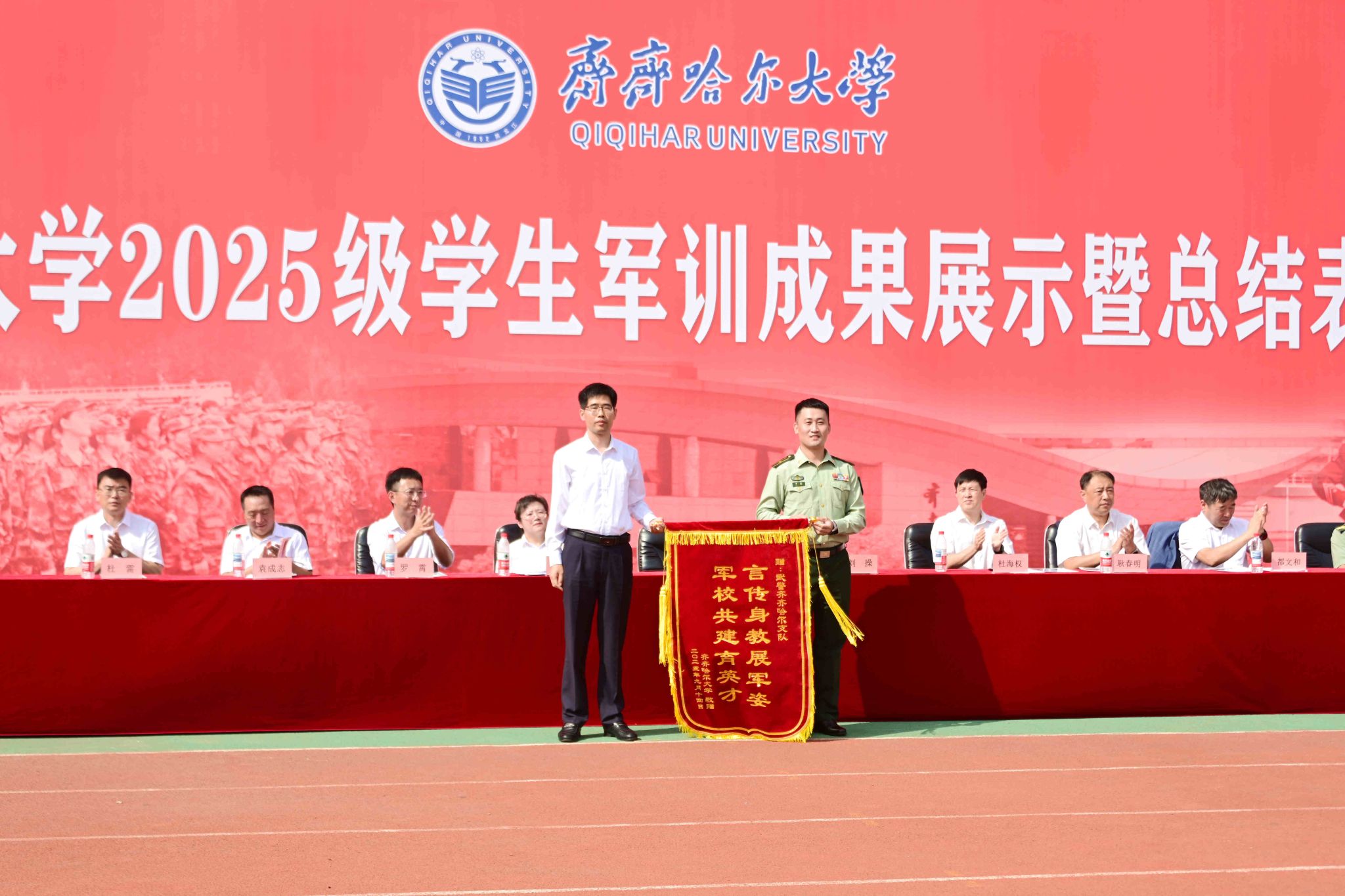 9月14日,學(xué)校2025級學(xué)生軍訓(xùn)成果展示暨總結(jié)表彰大會在西區(qū)體育場舉行。副校長、軍訓(xùn)團(tuán)政委徐廣洲,武警齊齊哈爾支隊(duì)少校副參謀長劉操出席大會,校武裝部部長、軍訓(xùn)團(tuán)參謀長于佳賓主持大會。