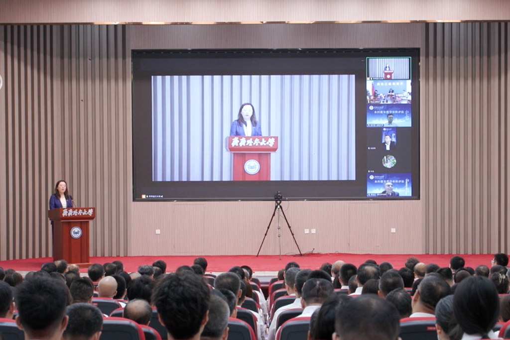 學(xué)校黨委書記丁宏致辭并表態(tài),她對專家組的到來表示熱烈的歡迎,向長期以來關(guān)心和支持學(xué)校發(fā)展的各位專家和省教育廳各位領(lǐng)導(dǎo)表示感謝。她表示,學(xué)校將緊緊抓住評估機遇,對標《教育強國建設(shè)規(guī)劃綱要(2024—2035年)》目標要求,堅持“以本為本”,踐行“四個回歸”,強化學(xué)生中心、產(chǎn)出導(dǎo)向、持續(xù)改進的教育教學(xué)理念,有效推進學(xué)校內(nèi)涵式高質(zhì)量發(fā)展,以最誠懇的態(tài)度接受評估,嚴格按照新一輪本科教育教學(xué)審核評估要求,全力配合專家組工作,高度重視并虛心聽取各位專家提出的寶貴意見和建議,真正實現(xiàn)“以評促建、以評促改、以評促管、以評促強”。