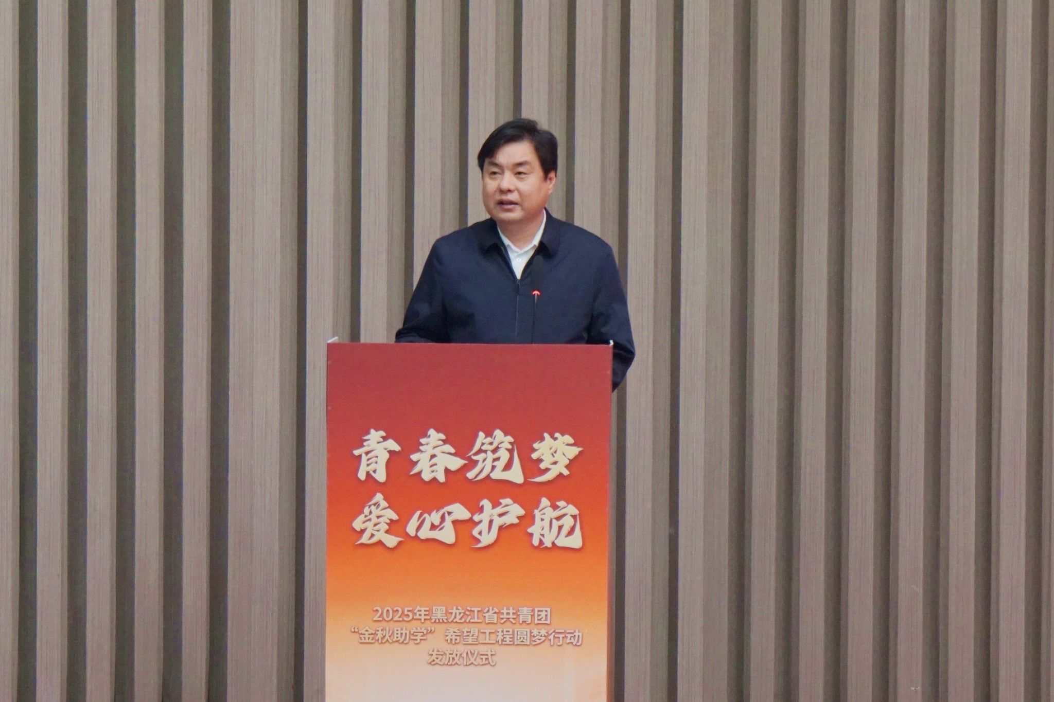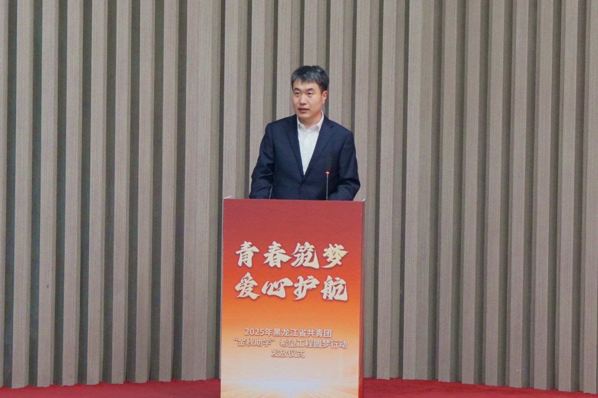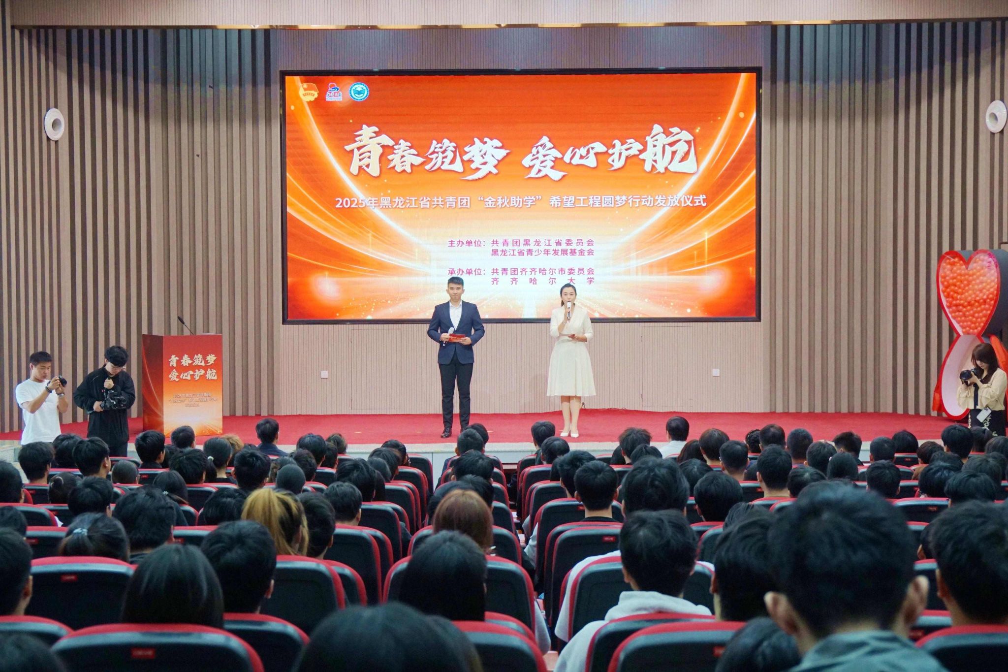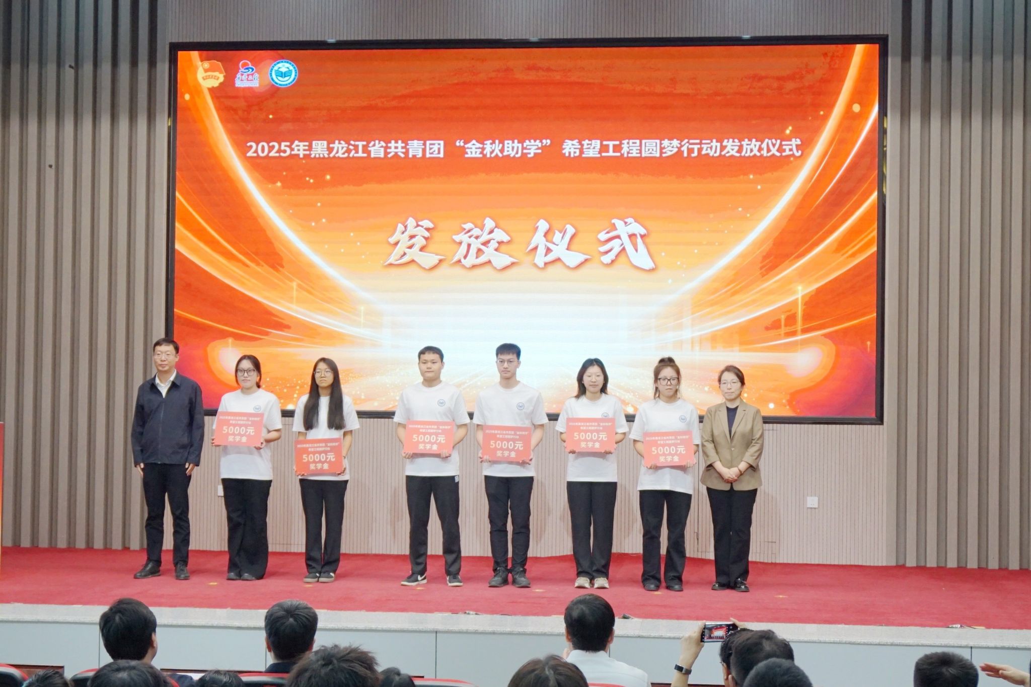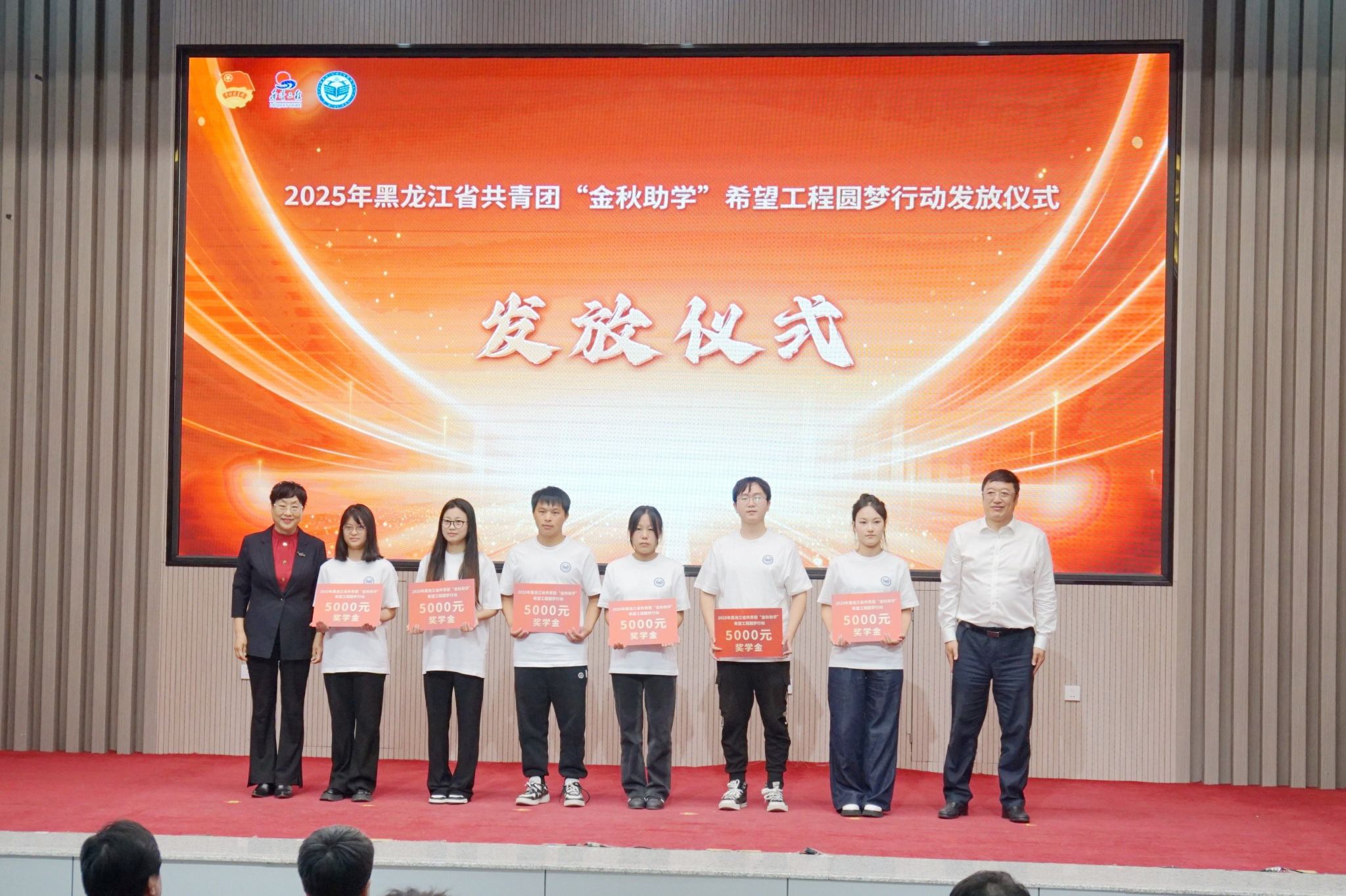9月23日上午,2025 年黑龍江省共青團(tuán)“金秋助學(xué)”希望工程圓夢(mèng)行動(dòng)獎(jiǎng)學(xué)金發(fā)放儀式在我校日新大廈舉行。共青團(tuán)黑龍江省委員會(huì)副書(shū)記張濤,中共齊齊哈爾市委副書(shū)記劉振江,我校黨委副書(shū)記張文治,黑龍江省希望工程捐助中心主任杜晶,黑龍江北大倉(cāng)集團(tuán)有限公司黨委書(shū)記、總裁隋熙鳳,共青團(tuán)齊齊哈爾市委員會(huì)書(shū)記王剛出席儀式。我校18名受助學(xué)子代表,以及各縣(市)區(qū)團(tuán)組織、愛(ài)心企業(yè)代表共300余人參與此次活動(dòng)。