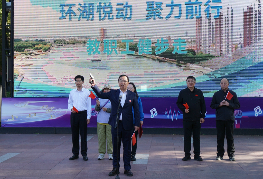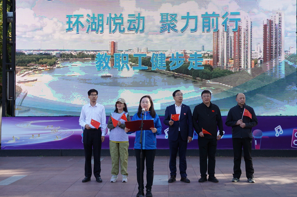校黨委書記丁宏在致辭時代表學校向辛勤耕耘在教學、科研、管理服務一線的全體教職工致以誠摯問候。她指出,學校環(huán)勞動湖而建,“環(huán)湖大學”的美譽深入人心。教職工環(huán)湖健步走活動作為學校的特色品牌活動,既體現(xiàn)了學校對教職工身心健康的關心關愛,也展現(xiàn)了齊大人團結奮進的精神風貌。當前學校正處于教育教學審核評估的關鍵時期,面臨著服務龍江全面振興、推進學科建設、提升育人質(zhì)量的新任務新挑戰(zhàn)。希望全體教職工把徒步中收獲的活力與激情,轉化為教書育人、干事創(chuàng)業(yè)的動力;把活動中凝聚的團結與共識,轉化為推動學校發(fā)展的強大合力。