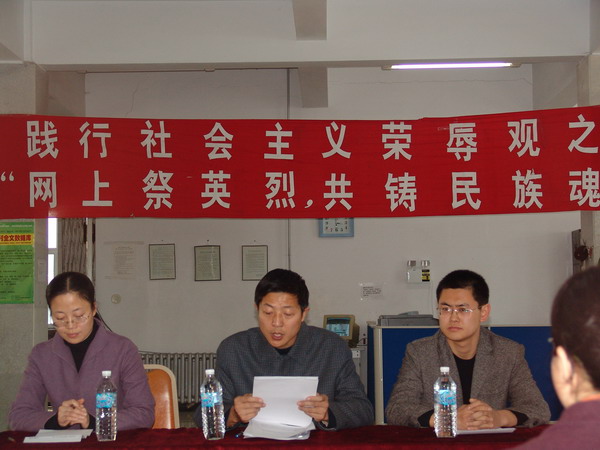 為貫徹胡錦濤總書記關(guān)于樹立社會(huì)主義榮辱觀的重要講話精神, 4月5日下午,我校團(tuán)委在學(xué)校西區(qū)圖書館三樓電子閱覽室集中組織了踐行社會(huì)主義榮辱觀之“網(wǎng)上祭英烈,共鑄民族魂”網(wǎng)上公祭活動(dòng)。公祭活動(dòng)儀式由校團(tuán)委副書記李秀梅主持,校團(tuán)委書記黃偉中講話。校團(tuán)委工作人員、各學(xué)院團(tuán)委書記、各校級(jí)學(xué)生組織代表、各學(xué)院學(xué)生代表共100余人參加了這次主題教育活動(dòng)。