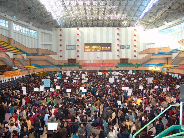 12月6日,我校2006屆畢業(yè)生供需雙選會(huì)在學(xué)校體育館全面拉開(kāi)帷幕,來(lái)自國(guó)內(nèi)10余省及直轄市的120多家企事業(yè)用人單位提供了1200 多個(gè)職位供畢業(yè)生選擇,近萬(wàn)人次畢業(yè)生入場(chǎng)參加了本次“雙選”會(huì)。副校長(zhǎng)姜守訓(xùn)出席,學(xué)生指導(dǎo)中心主任李迎春、學(xué)生處(學(xué)工部)長(zhǎng)王剛以及各學(xué)院黨政負(fù)責(zé)人、學(xué)工辦負(fù)責(zé)人等參加了“雙選”會(huì)并組織學(xué)生指導(dǎo)中心、學(xué)生處、保衛(wèi)處、網(wǎng)絡(luò)信息中心、體育館以及各學(xué)院學(xué)工辦等相關(guān)人員做好各項(xiàng)服務(wù)工作。