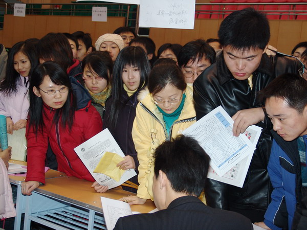 近年來(lái),隨著高等教育的飛速發(fā)展,高校畢業(yè)生面臨就業(yè)的壓力。2006年黑龍江省本科畢業(yè)生達(dá)到19萬(wàn),比去年多2萬(wàn)余人。我校2006屆畢業(yè)生總數(shù)為5849人,其中師范類(lèi)2169人,非師范類(lèi)3680人,比2005年增加了580人,是建校以來(lái)畢業(yè)生最多的一屆。今年用人單位用人“門(mén)檻”普遍高漲,對(duì)人才素質(zhì)的要求更高了。絕大多數(shù)用人單位對(duì)所需人才的學(xué)歷定位在本科以上,對(duì)外語(yǔ)、計(jì)算機(jī)的要求程度也大大提高。