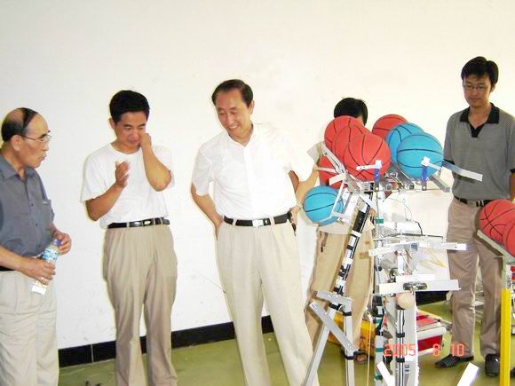 唱江華校長(zhǎng)認(rèn)真地觀看了我校同學(xué)研制的參賽機(jī)器人的模擬表演,并就有關(guān)問(wèn)題與計(jì)算機(jī)與控制工程學(xué)院院長(zhǎng)戴學(xué)豐等指導(dǎo)教師和參賽同學(xué)交換了意見(jiàn)。唱江華校長(zhǎng)關(guān)切地詢問(wèn)參賽師生的學(xué)習(xí)和生活,親切地與參賽同學(xué)進(jìn)行交談,并代表學(xué)校對(duì)他們表示親切的慰問(wèn)。他勉勵(lì)參賽師生在比賽中取得優(yōu)異賽績(jī),為校爭(zhēng)光。