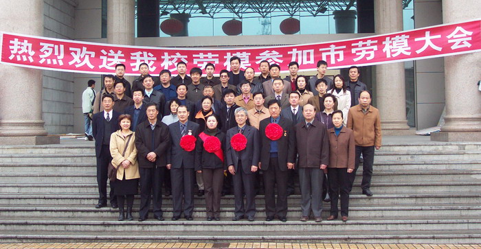 校領(lǐng)導(dǎo)等與四位同志合影留念之后,校黨委副書記王鳳琴、校工會主席呂曉輝和校工會的有關(guān)同志乘車把四位同志送到市工人文化宮參加表彰大會。