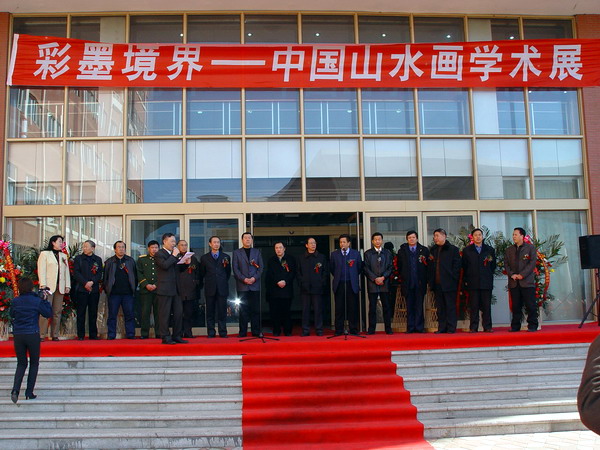 3月18日上午10時,我校美術(shù)展館前彩旗飛揚,人頭攢動,由黑龍江省美術(shù)家協(xié)會、齊齊哈爾市委宣傳部、齊齊哈爾市文聯(lián)、齊齊哈爾大學(xué)藝術(shù)學(xué)院、齊齊哈爾美術(shù)家協(xié)會主辦的“彩墨境界—中國山水畫學(xué)術(shù)展”在我校隆重開幕。中國著名畫家、省美術(shù)家協(xié)會主席、省文聯(lián)副主席、哈師大副校長、藝術(shù)學(xué)院院長盧禹舜、市政協(xié)主席張志良、副市長孫剛、我校校長唱江華、副校長鄧啟剛、市師范??茖W(xué)校黨委書記楊民和市委宣傳部、市消防支隊、市文聯(lián)、市美術(shù)家協(xié)會等有關(guān)領(lǐng)導(dǎo)以及受邀請的嘉賓出席了開幕式。開幕式由市文聯(lián)副主席曹志勃主持。