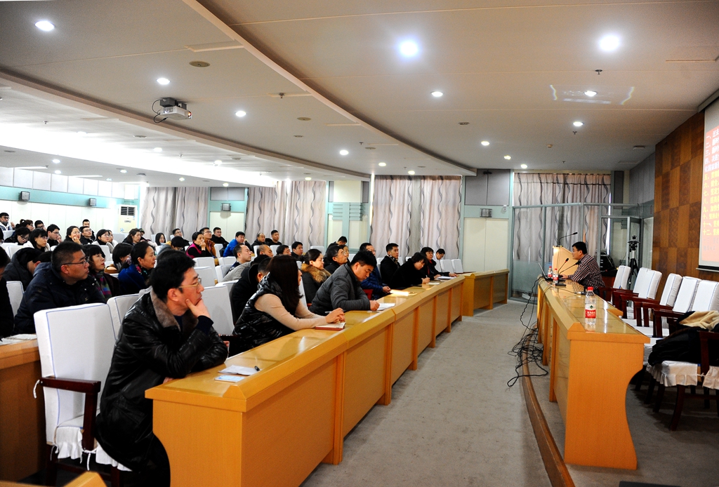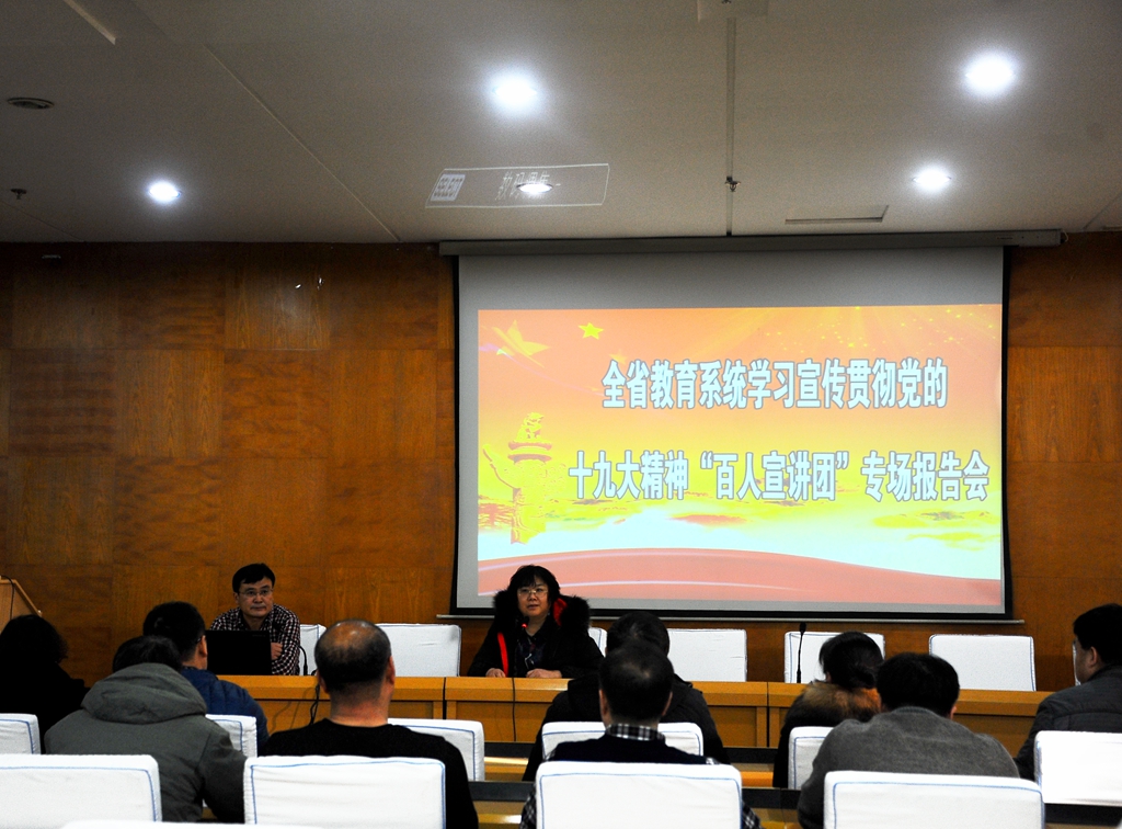 12月26日下午,全省教育系統(tǒng)學習宣傳貫徹黨的十九大精神“百人宣講團”報告會在我校西區(qū)主樓七樓學術報告廳舉辦,學校黨委邀請全省教育系統(tǒng)學習宣傳貫徹黨的十九大精神“百人宣講團”成員、我校馬克思主義學院馬克思主義基本原理教研部主任王圣禎教授作黨的十九大精神輔導報告。學生工作部(學生處)、校團委、就業(yè)指導處全體工作人員,各學院主管學生工作的黨委書記、副書記副院長、全體輔導員以及我校第五期團學骨干日新班學員參加了報告會。會議由校黨委宣傳統(tǒng)戰(zhàn)部部長王曉梅主持。