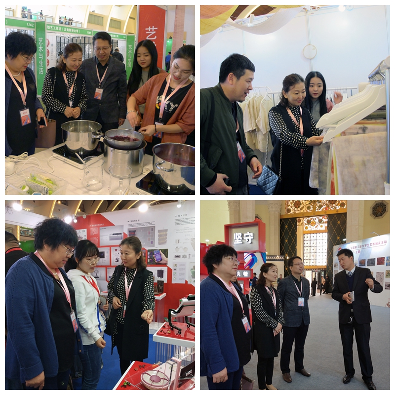 在六天的展演活動中,無論是介紹展示環(huán)節(jié),還是學(xué)習(xí)交流過程,參演師生始終嚴(yán)守紀(jì)律,克服困難,細(xì)致講解,熱情服務(wù),充分展示了我校師生精誠合作的團(tuán)隊(duì)意識、朝氣蓬勃的精神風(fēng)貌、勇于創(chuàng)新的奮斗姿態(tài)和精湛嫻熟的專業(yè)知識,受到觀展領(lǐng)導(dǎo)、師生、市民的好評與贊譽(yù)。參演師生還參加了組委會組織的愛國主義教育和國防教育活動。在展演期間,每天循環(huán)播放我?!兑I(lǐng)區(qū)域文化 譜寫育人華章》專題片和草木染傳統(tǒng)手工坊宣傳片,進(jìn)一步擴(kuò)大了學(xué)校和工作坊的影響力。