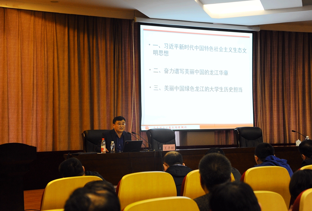 開班式結(jié)束后,集中輪訓正式開始。馬克思主義學院副院長(主持學院行政工作)王圣禎作了題為《習近平新時代中國特色社會主義生態(tài)文明思想與龍江綠色發(fā)展》的專題報告。在報告中,他圍繞習近平新時代中國特色社會主義生態(tài)文明思想、奮力譜寫美麗中國的龍江篇章、美麗中國綠色龍江的大學生歷史擔當?shù)热齻€方面做了深入細致的解讀。