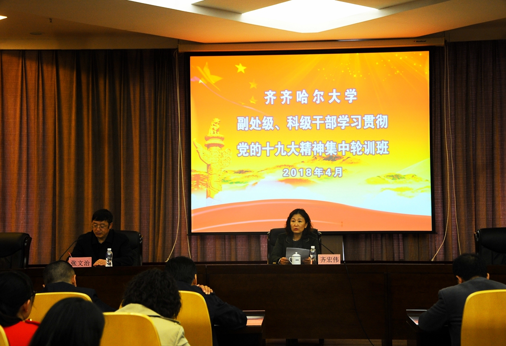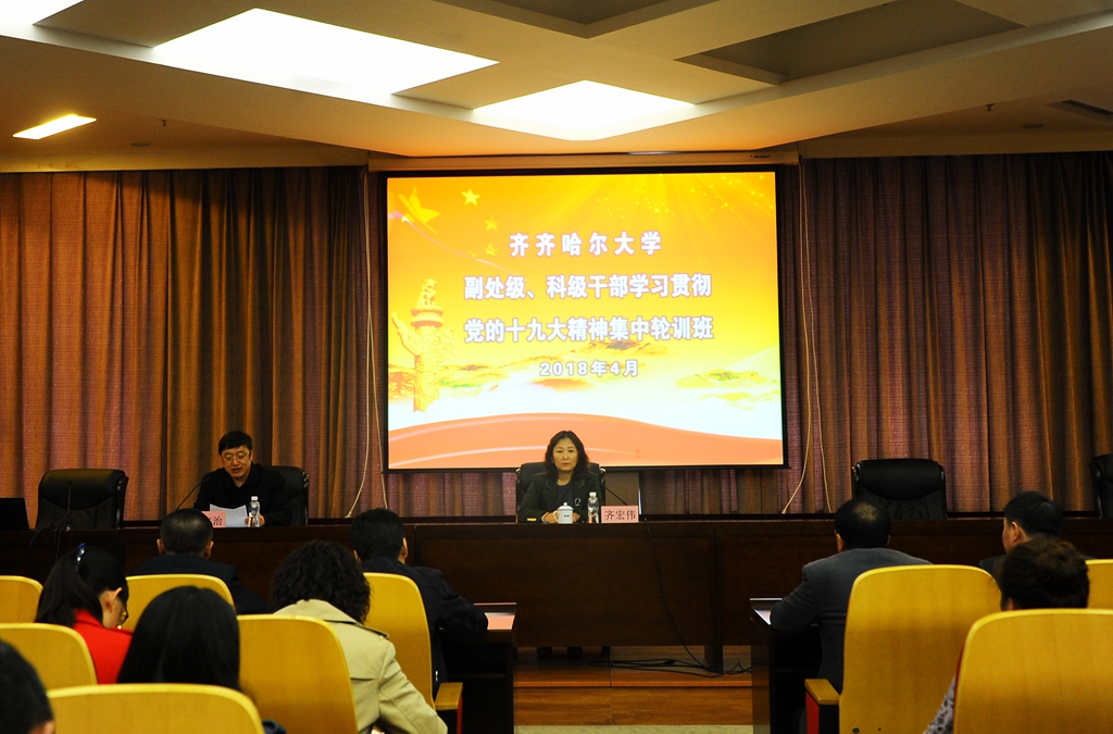 按照《中共黑龍江省委組織部關(guān)于做好縣處級以上領(lǐng)導干部學習貫徹黨的十九大精神集中輪訓工作的通知》(黑組發(fā)〔2017〕9號)和《關(guān)于開展高校處級干部學習貫徹黨的十九大精神集中輪訓工作的通知》(黑高工委函〔2017〕29號)要求,經(jīng)學校黨委研究決定,4月23日下午,全校副處級、科級干部學習貫徹黨的十九大精神集中輪訓班在德潤大廈四樓會議室舉辦。校黨委副書記齊宏偉出席開班式并講話,開班式由黨委組織部臨時負責人張文治主持。
