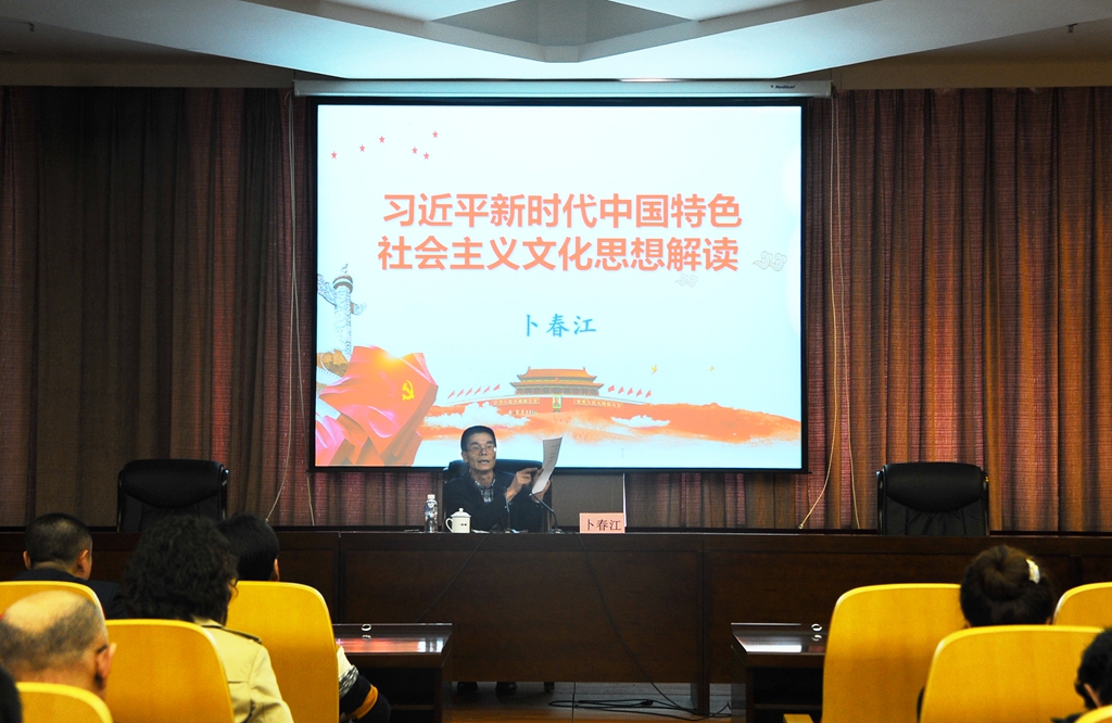 24日下午,哲學與法學學院黨委書記卜春江以《習近平新時代中國特色社會主義文化思想解讀》為題,為輪訓班全體學員帶來了一場專題講座,詳盡闡述了習近平新時代中國特色社會主義文化思想的歷史定位和重大意義、習近平新時代中國特色社會主義文化思想的基本內(nèi)容、堅持以習近平新時代中國特色社會主義文化思想為指導,建設(shè)社會主義文化強國等三個方面的內(nèi)容。