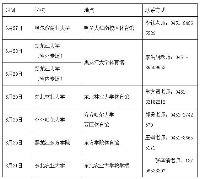 附:同期黑龍江省份部分高校招聘會安排(以召開時間先后為序)
