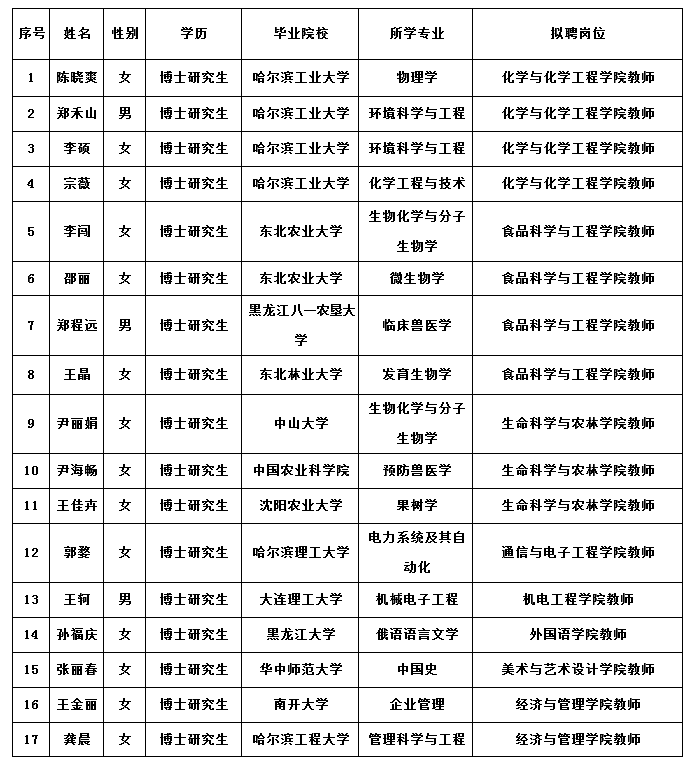 按照《黑龍江省事業(yè)單位公開招聘工作人員實(shí)施細(xì)則》的規(guī)定,根據(jù)《齊齊哈爾大學(xué)2018年上半年公開招聘人員公告》明確的原則、程序和方法,現(xiàn)將擬聘用人員予以公示。如對(duì)公示人員有異議,可在公示期內(nèi)反映,反映情況和問題必須實(shí)事求是,應(yīng)簽署或告知真實(shí)姓名、工作單位和聯(lián)系方式;對(duì)線索不清的匿名信和匿名電話,公示期間不予受理。