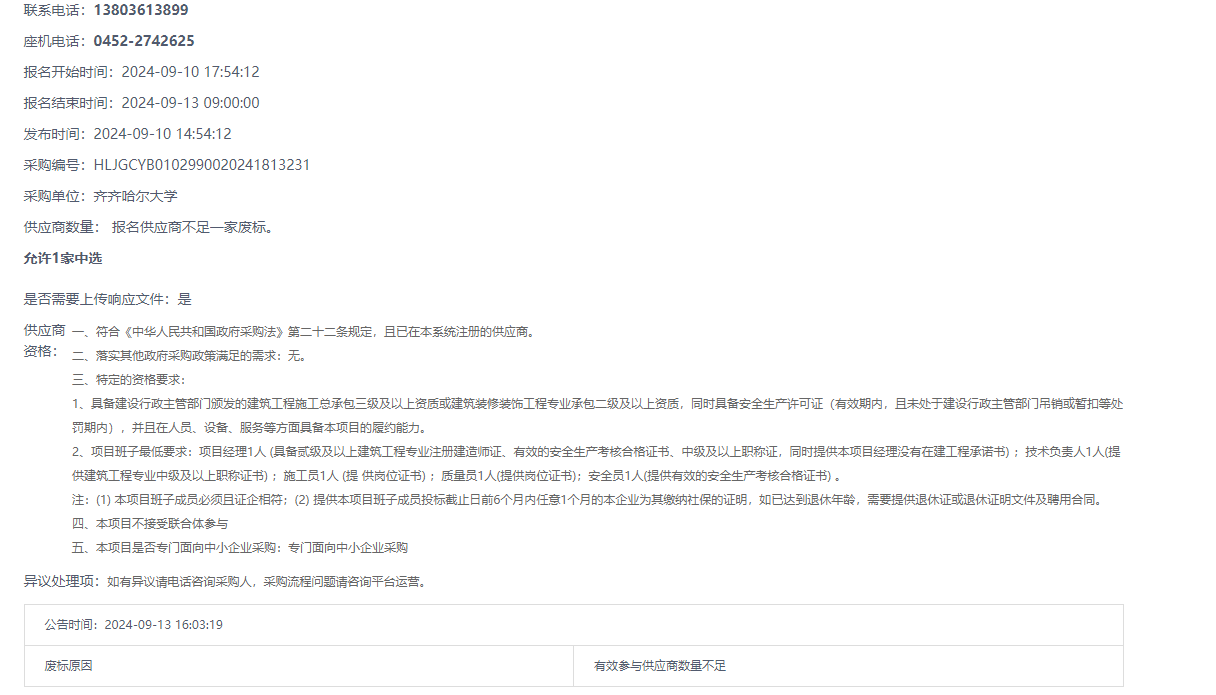 下一條:齊齊哈爾大學(xué)生命科學(xué)與農(nóng)林學(xué)院實驗雜品、化學(xué)試劑采購項目成交公告(轉(zhuǎn)自中國政府采購網(wǎng))