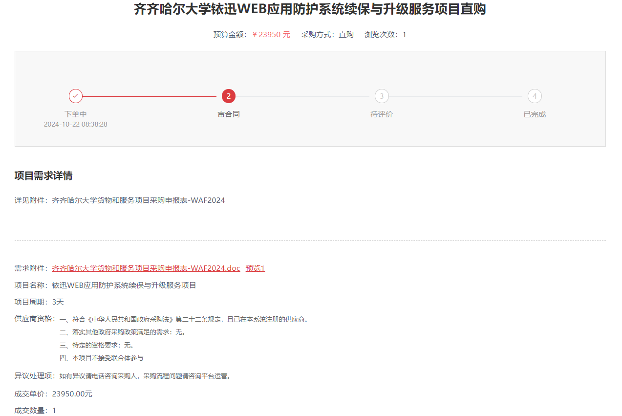 下一條:齊齊哈爾大學(xué)漏洞掃描系統(tǒng)續(xù)保與升級(jí)服務(wù)項(xiàng)目直購(gòu)(轉(zhuǎn)自黑龍江省政府采購(gòu)網(wǎng))