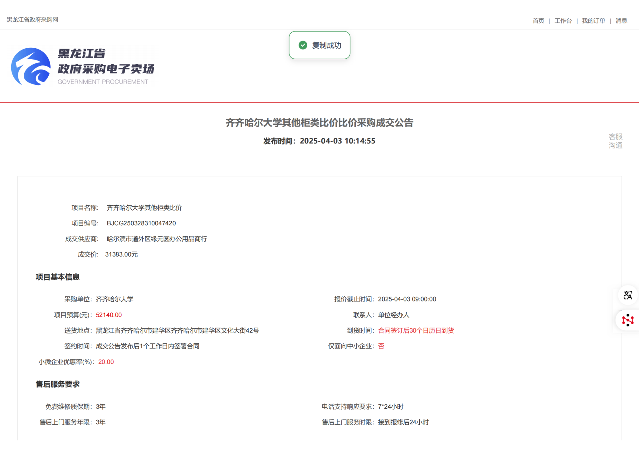 下一條:易燃易爆化學(xué)品存儲(chǔ)柜22加侖黃色成交公告(轉(zhuǎn)自黑龍江省政府采購(gòu)網(wǎng))