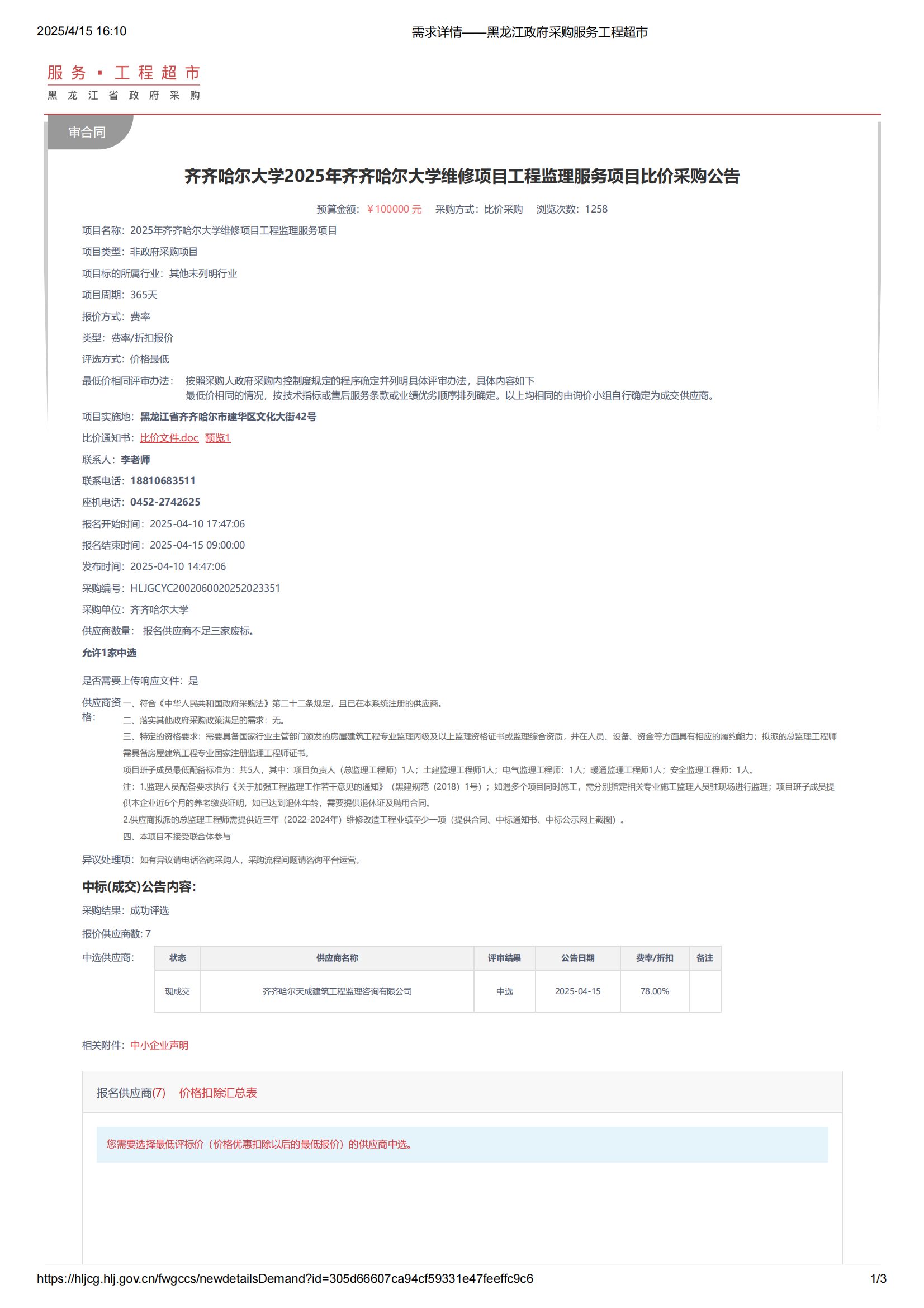 下一條:齊齊哈爾大學(xué)學(xué)生公寓物業(yè)服務(wù)采購(gòu)項(xiàng)目招標(biāo)公告(轉(zhuǎn)自黑龍江省政府采購(gòu)網(wǎng))