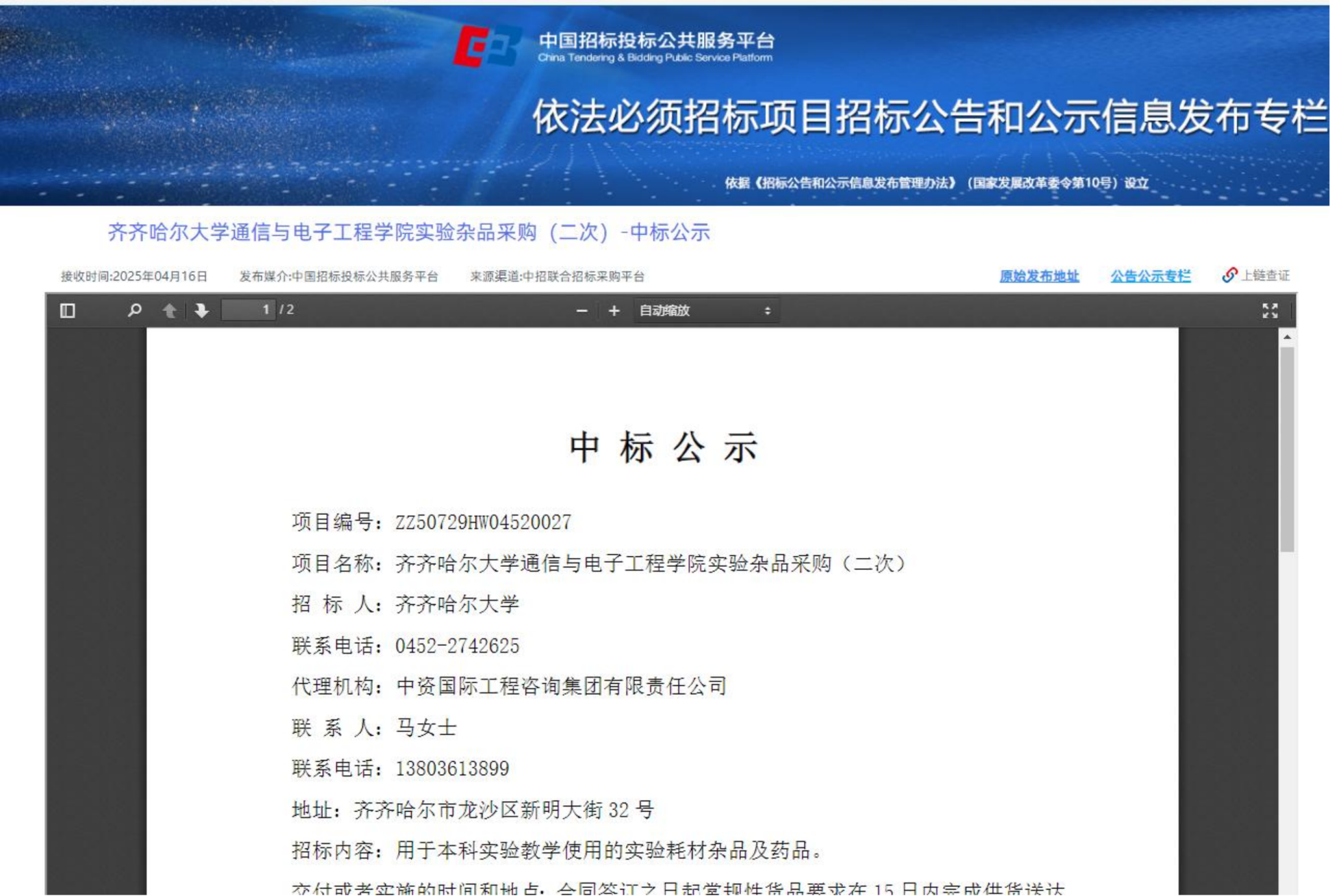 上一條:齊齊哈爾大學(xué)學(xué)歷繼續(xù)教育綜合服務(wù)平臺運維服務(wù)單一來源采購公告(轉(zhuǎn)自中國招標(biāo)投標(biāo)公共服務(wù)平臺)
