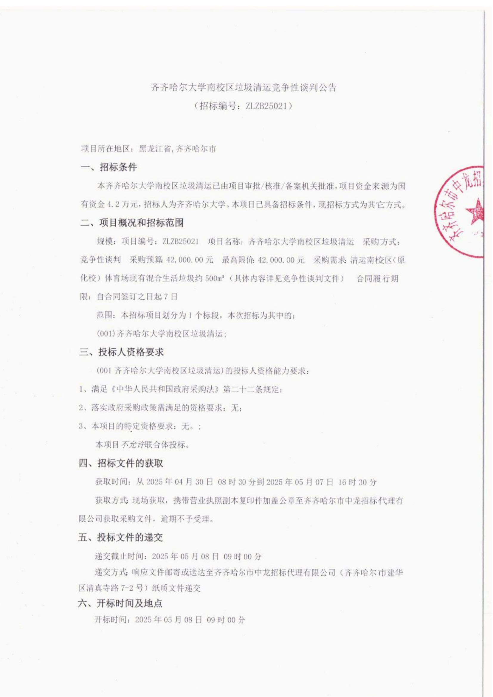 下一條:齊齊哈爾大學(xué)2025年碩士學(xué)位論文評(píng)閱服務(wù)采購(gòu)實(shí)行單一來(lái)源采購(gòu)方式的公示(轉(zhuǎn)自黑龍江省政府采購(gòu)網(wǎng))