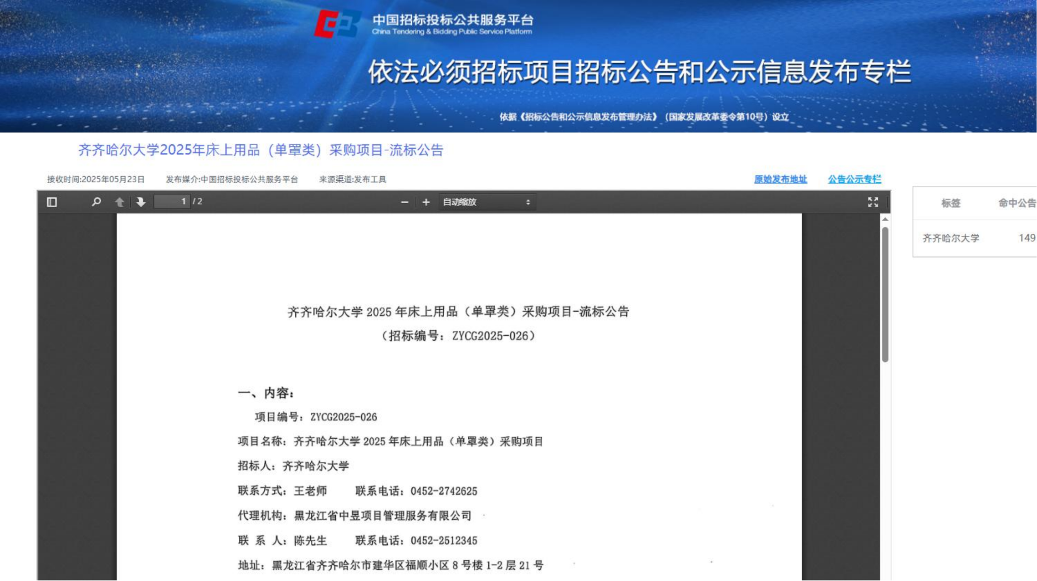 上一條:齊齊哈爾大學(xué)2025年床上用品(內(nèi)芯類(lèi))采購(gòu)項(xiàng)目-流標(biāo)公告(轉(zhuǎn)自中國(guó)招標(biāo)投標(biāo)公共服務(wù)平臺(tái))