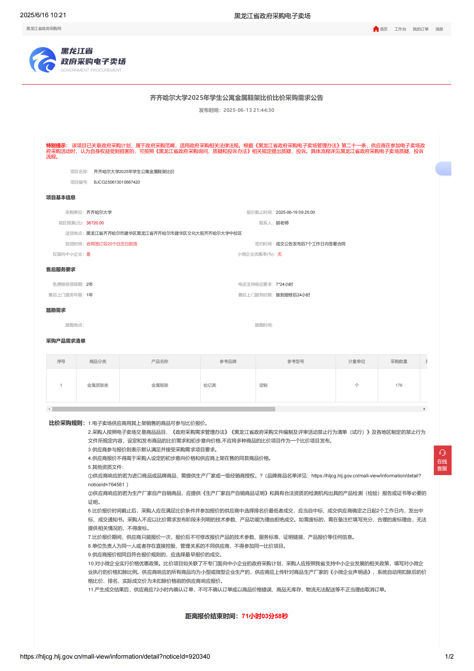 下一條:齊齊哈爾大學(xué)2025年學(xué)生公寓金屬衣架比價(jià)比價(jià)采購(gòu)需求公告(轉(zhuǎn)自黑龍江省政府采購(gòu)網(wǎng))