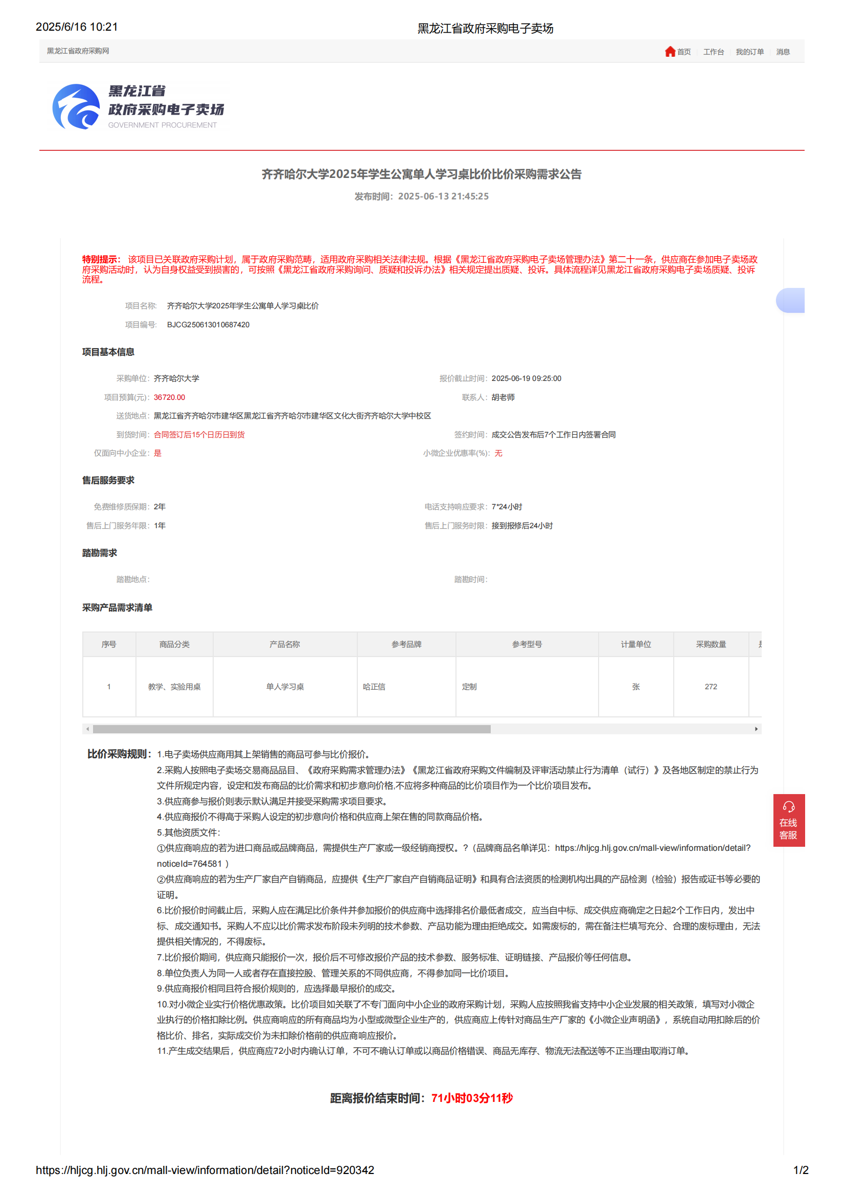 上一條:齊齊哈爾大學(xué)2025年學(xué)生公寓上下鋪公寓床(普通)比價(jià)比價(jià)采購(gòu)需求公告(轉(zhuǎn)自黑龍江省政府采購(gòu)網(wǎng))