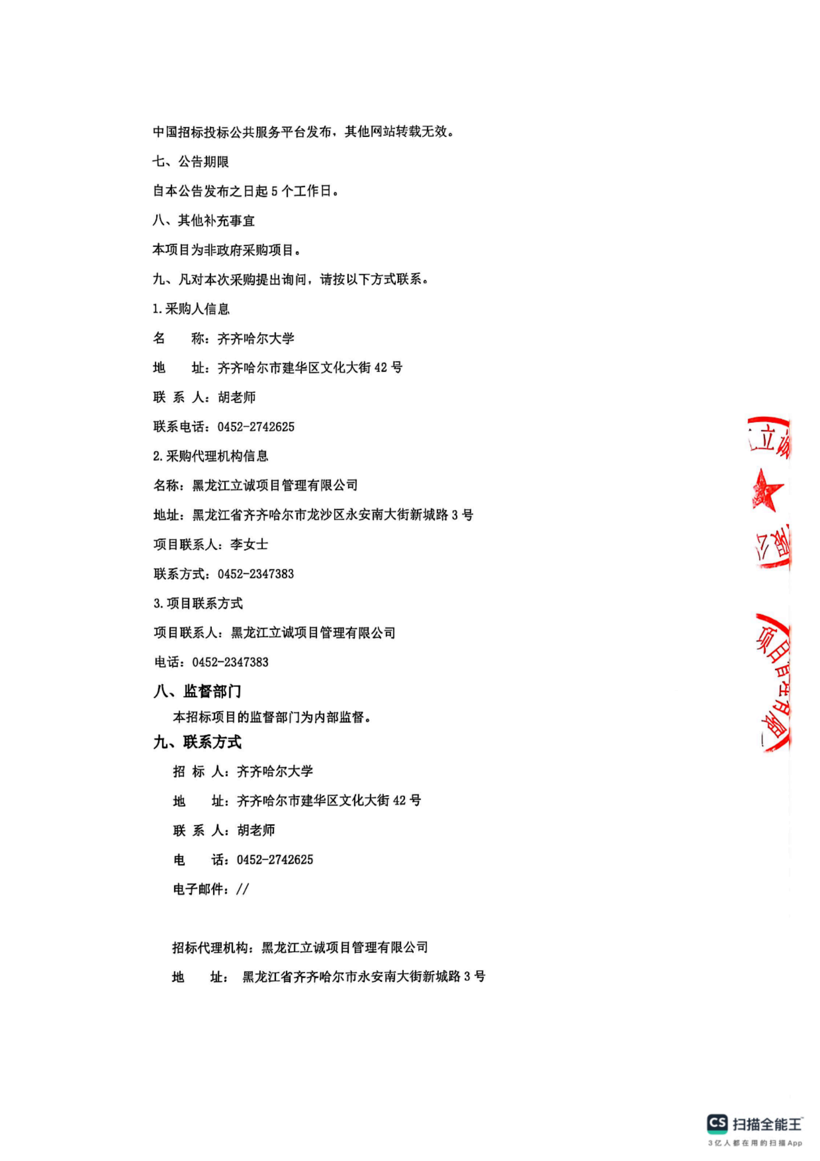 上一條:齊齊哈爾大學生命科學與農(nóng)林學院一流專業(yè)建設(shè)項目設(shè)備采購(二次)結(jié)果更正公告(第一次)(轉(zhuǎn)自黑龍江省政府采購網(wǎng))