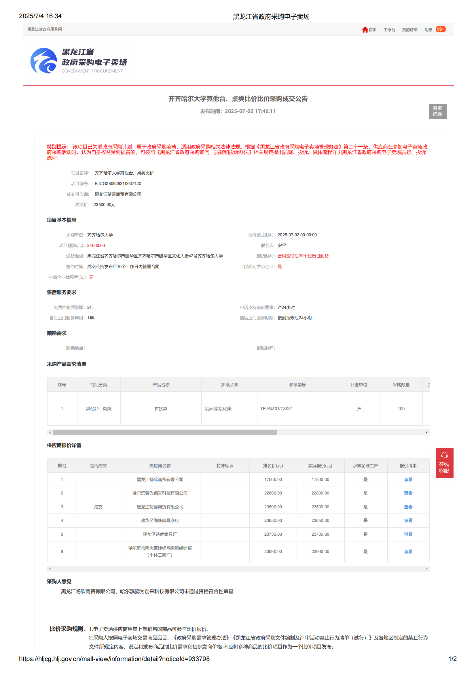 上一條:齊齊哈爾大學(xué)教學(xué)、實(shí)驗(yàn)椅凳比價(jià)比價(jià)采購(gòu)成交公告(轉(zhuǎn)自黑龍江省政府采購(gòu)網(wǎng))