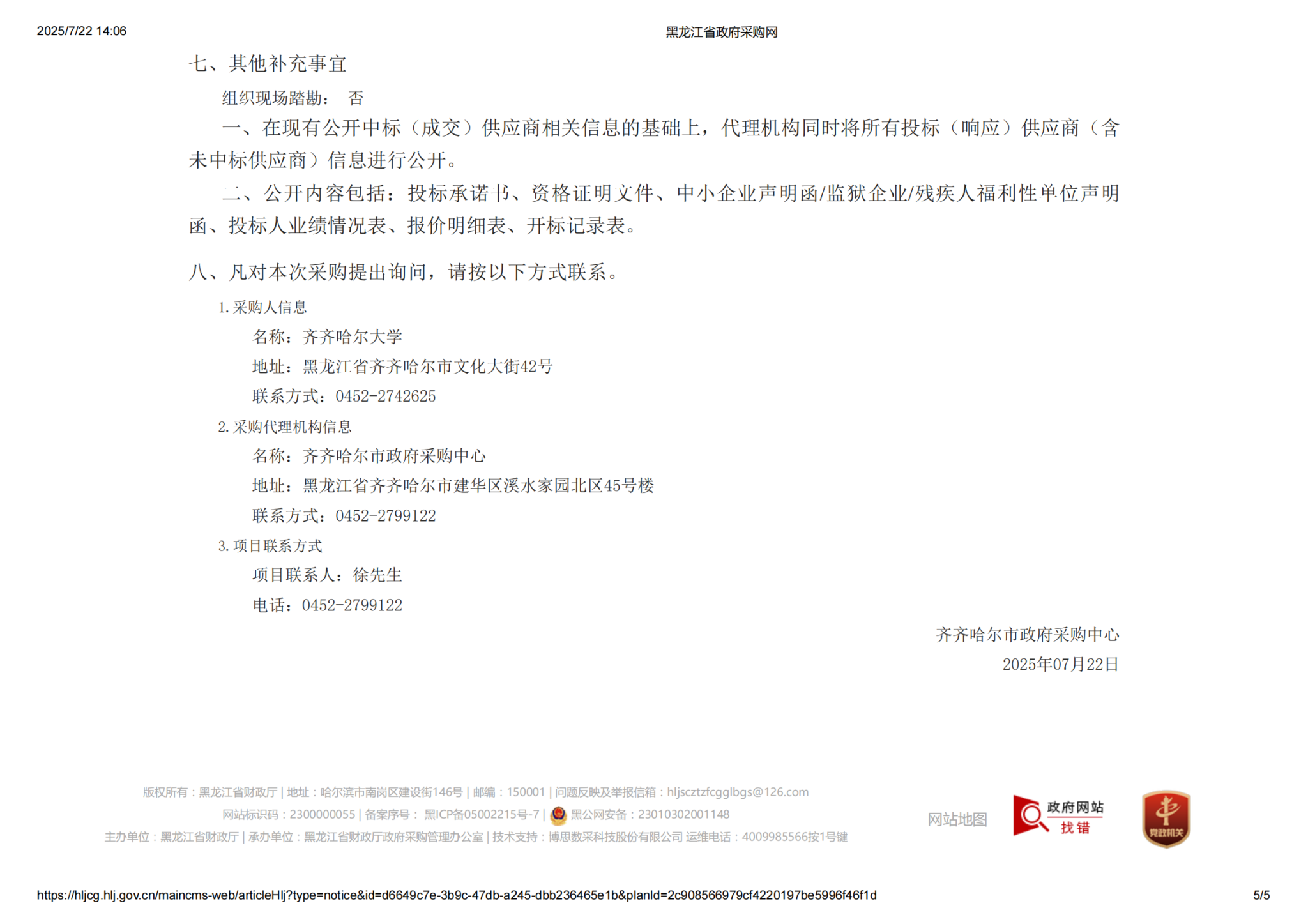 下一條:齊齊哈爾大學(xué)建筑與土木工程學(xué)院補(bǔ)充更新教學(xué)設(shè)備項(xiàng)目(二)中標(biāo)(成交)結(jié)果公告(轉(zhuǎn)自黑龍江省政府采購(gòu)網(wǎng))