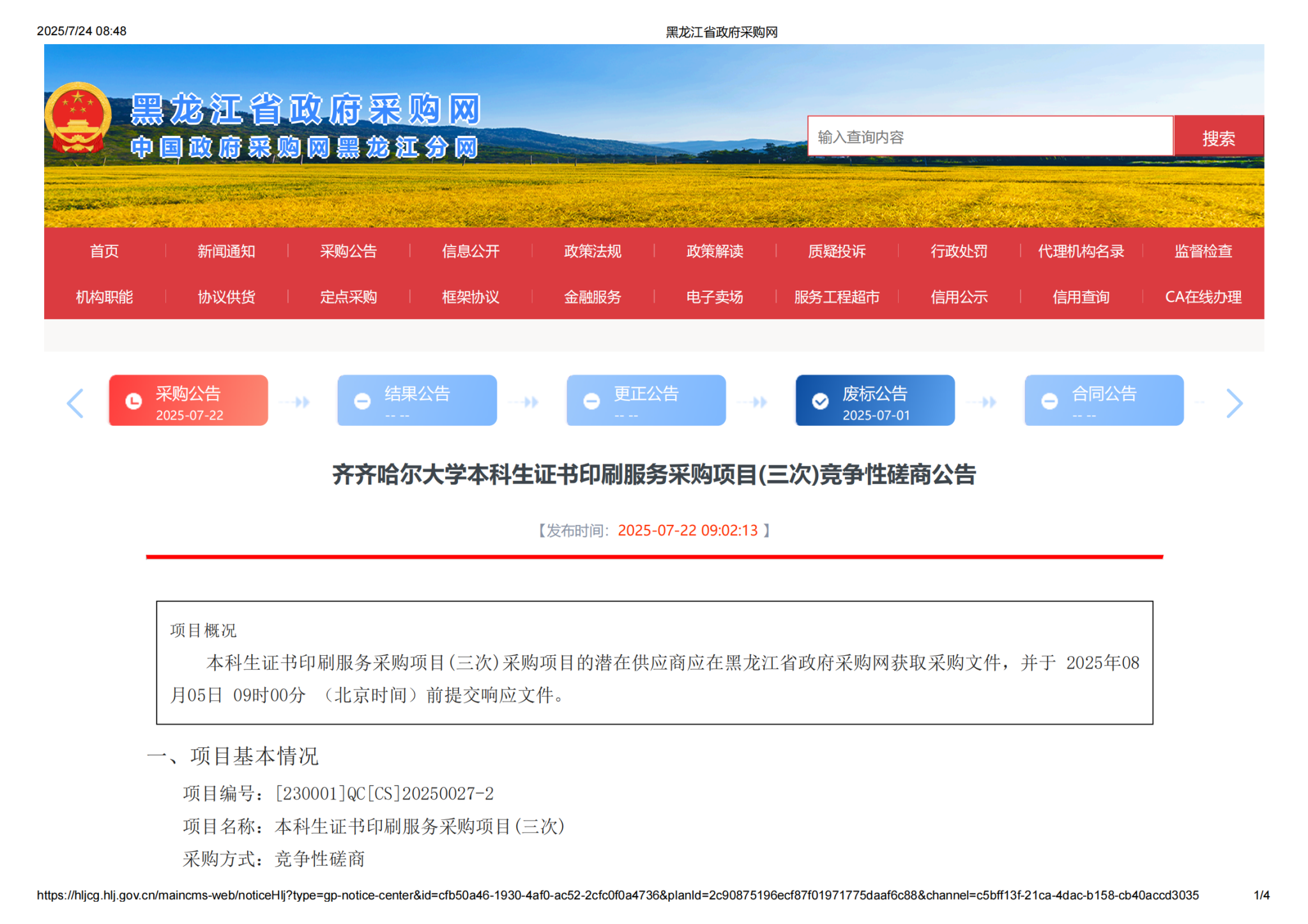 下一條:齊齊哈爾大學(xué)排污系統(tǒng)清掏服務(wù)采購項(xiàng)目(第3次)比價(jià)采購公告(成交公告)(轉(zhuǎn)自黑龍江省政府采購網(wǎng))
