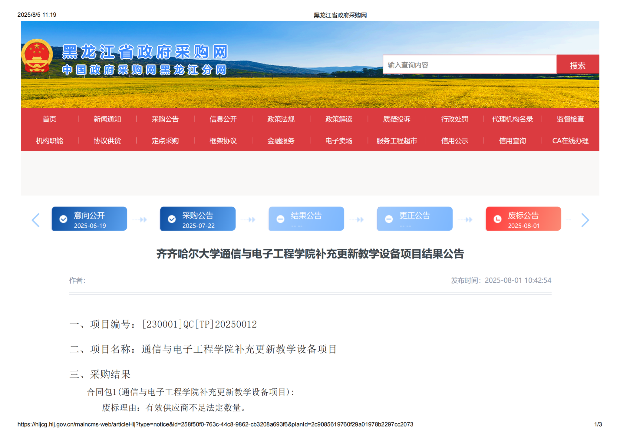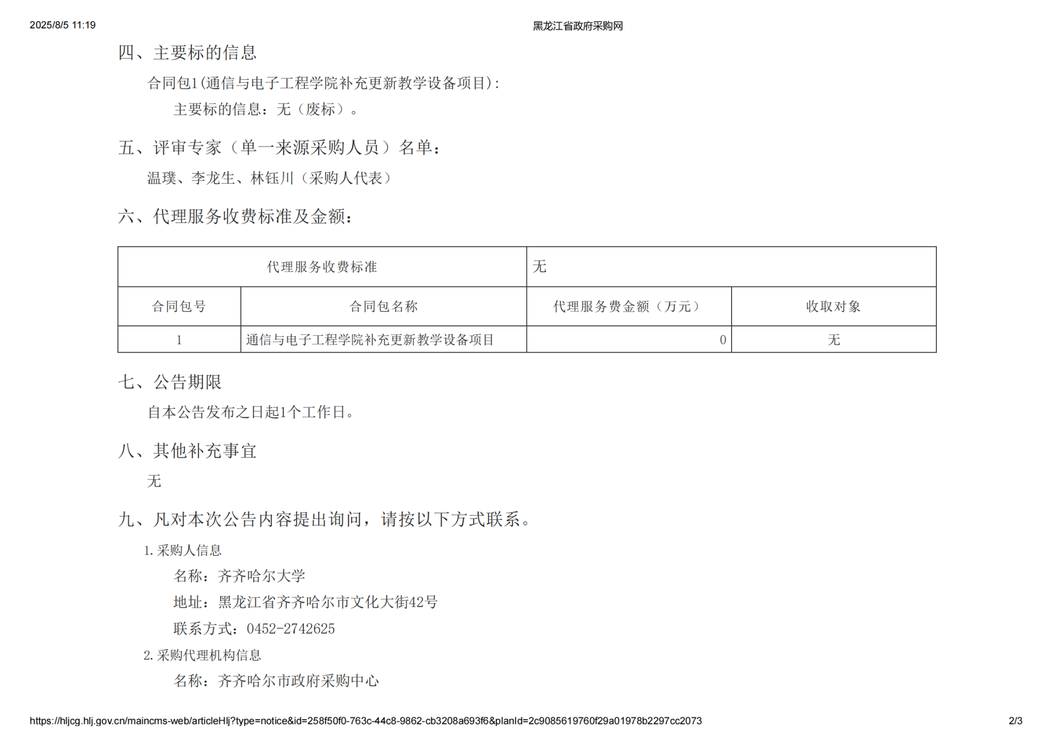 上一條:齊齊哈爾大學(xué)通信與電子工程學(xué)院實(shí)驗(yàn)雜品采購(gòu)項(xiàng)目(三次)中標(biāo)(成交)結(jié)果公告(轉(zhuǎn)自中國(guó)招標(biāo)投標(biāo)公共服務(wù)平臺(tái))