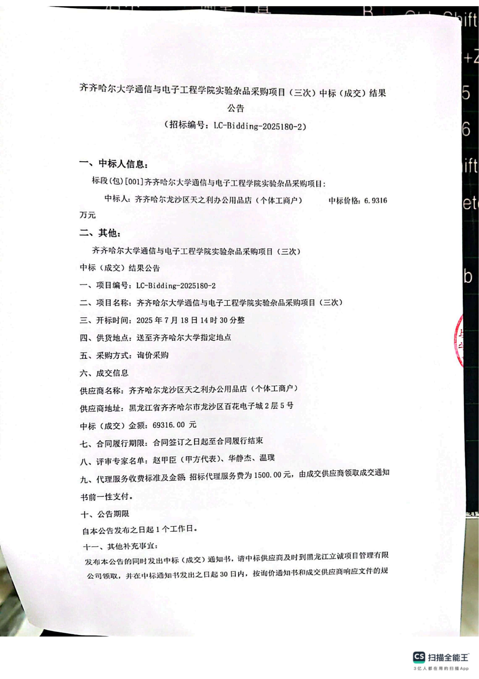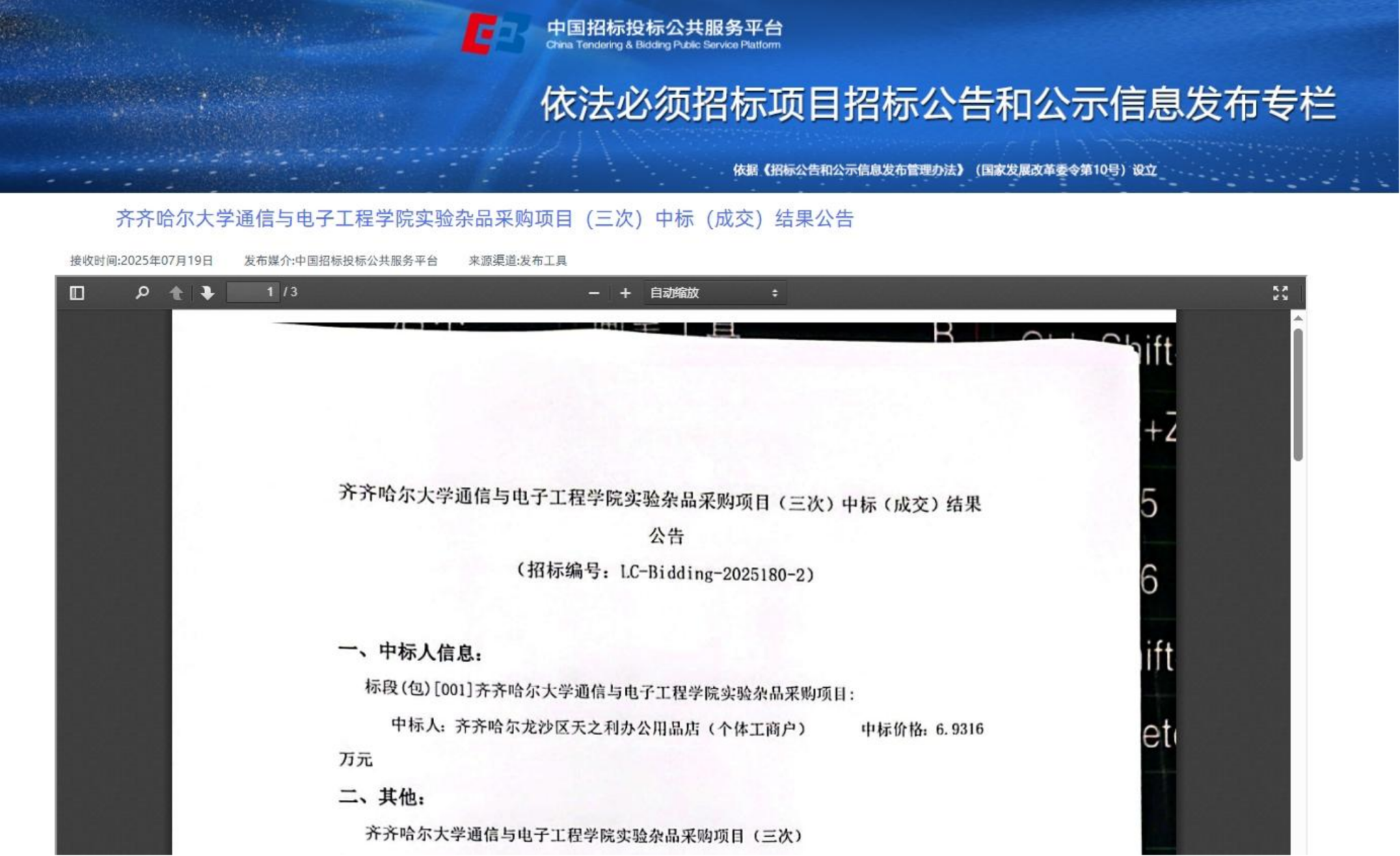 下一條:齊齊哈爾大學(xué)通信與電子工程學(xué)院補(bǔ)充更新教學(xué)設(shè)備項(xiàng)目結(jié)果公告(廢標(biāo))(轉(zhuǎn)自黑龍江省政府采購(gòu)網(wǎng))