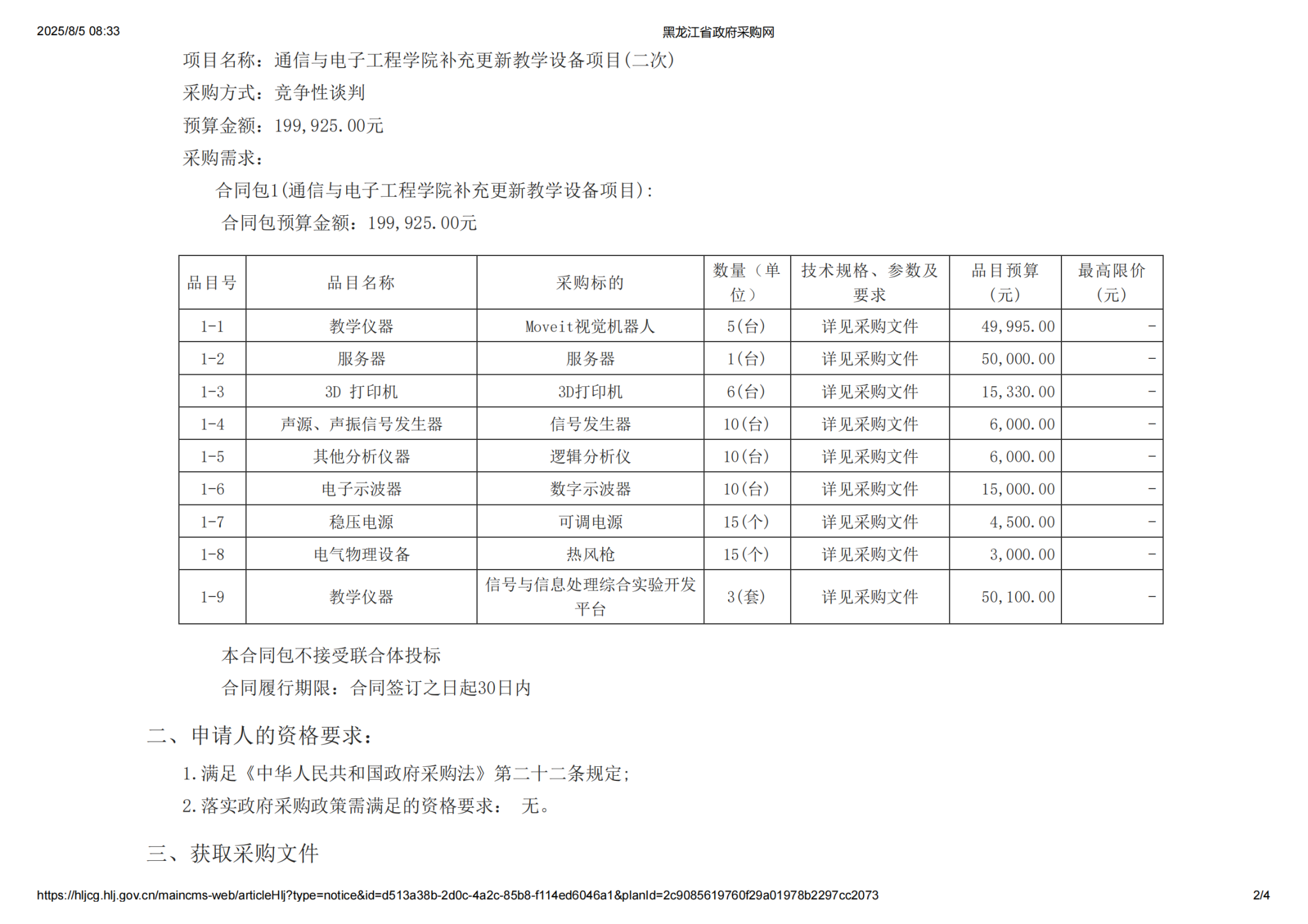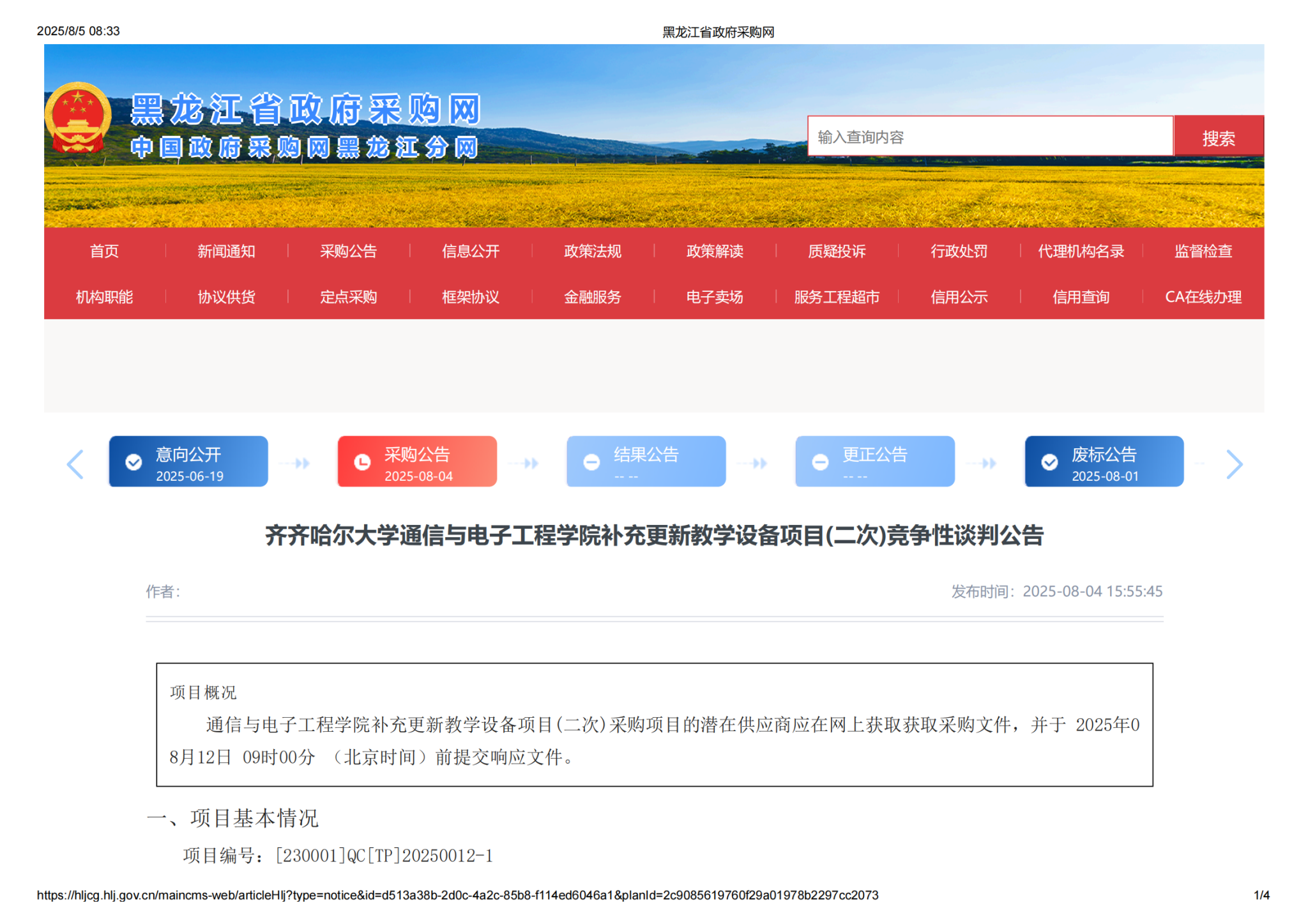 下一條:齊齊哈爾大學(xué)通信與電子工程學(xué)院實驗雜品采購項目(三次)中標(biāo)(成交)結(jié)果公告(轉(zhuǎn)自中國招標(biāo)投標(biāo)公共服務(wù)平臺)