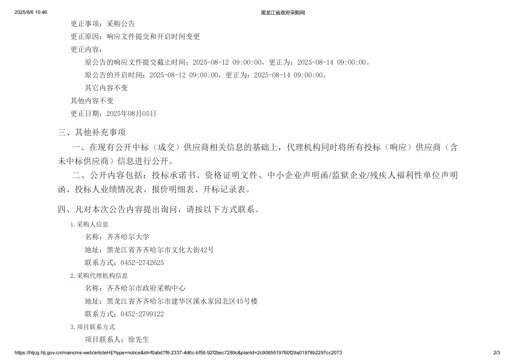 下一條:齊齊哈爾大學危險化學品暫存站維修(增加)項目(第2次)比價采購公告(轉自黑龍江省政府采購網(wǎng))