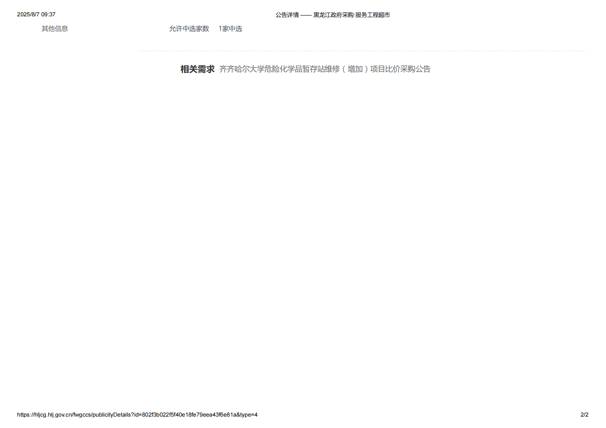 上一條:齊齊哈爾大學(xué)危險(xiǎn)化學(xué)品暫存站建設(shè)項(xiàng)目結(jié)果公告(轉(zhuǎn)自黑龍江省政府采購網(wǎng))