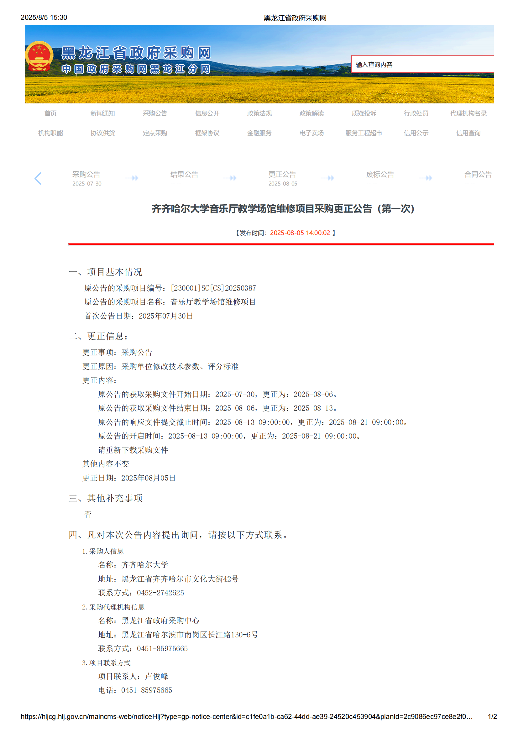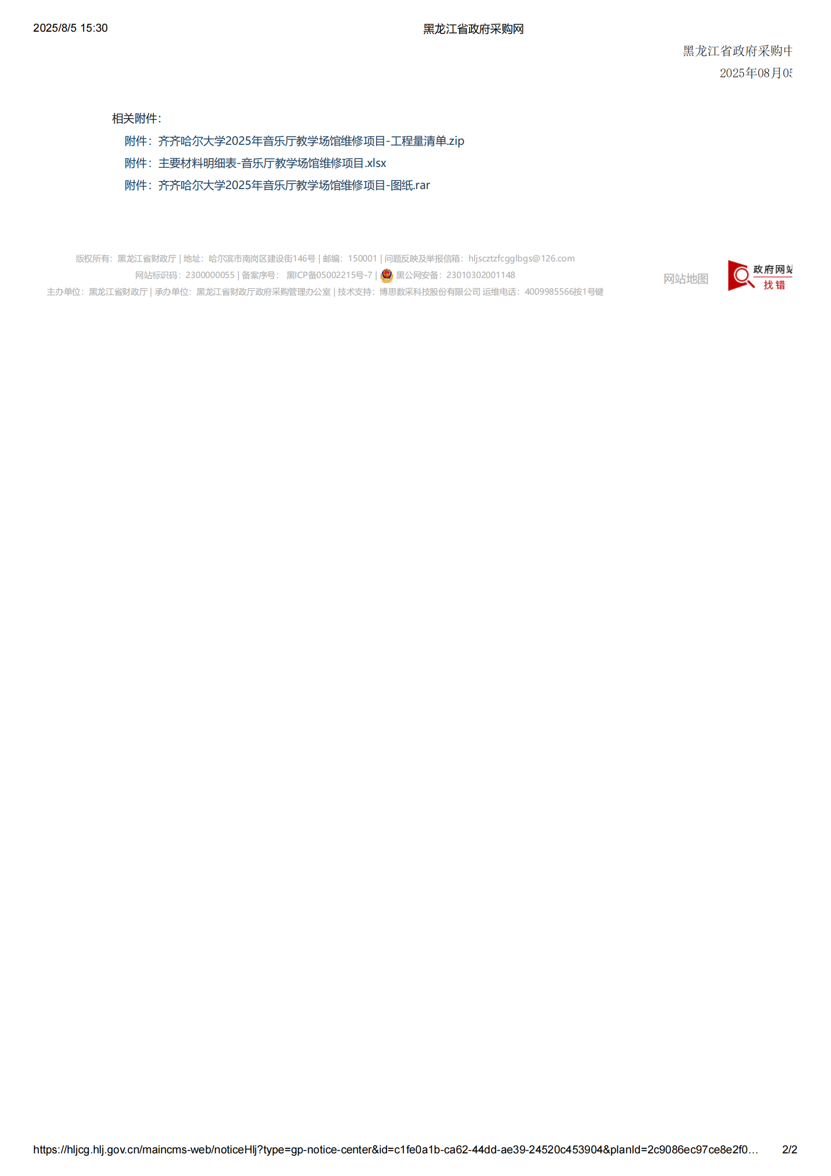 下一條:齊齊哈爾大學音樂廳教學場館維修項目競爭性磋商公告(轉(zhuǎn)自黑龍江省政府采購網(wǎng))