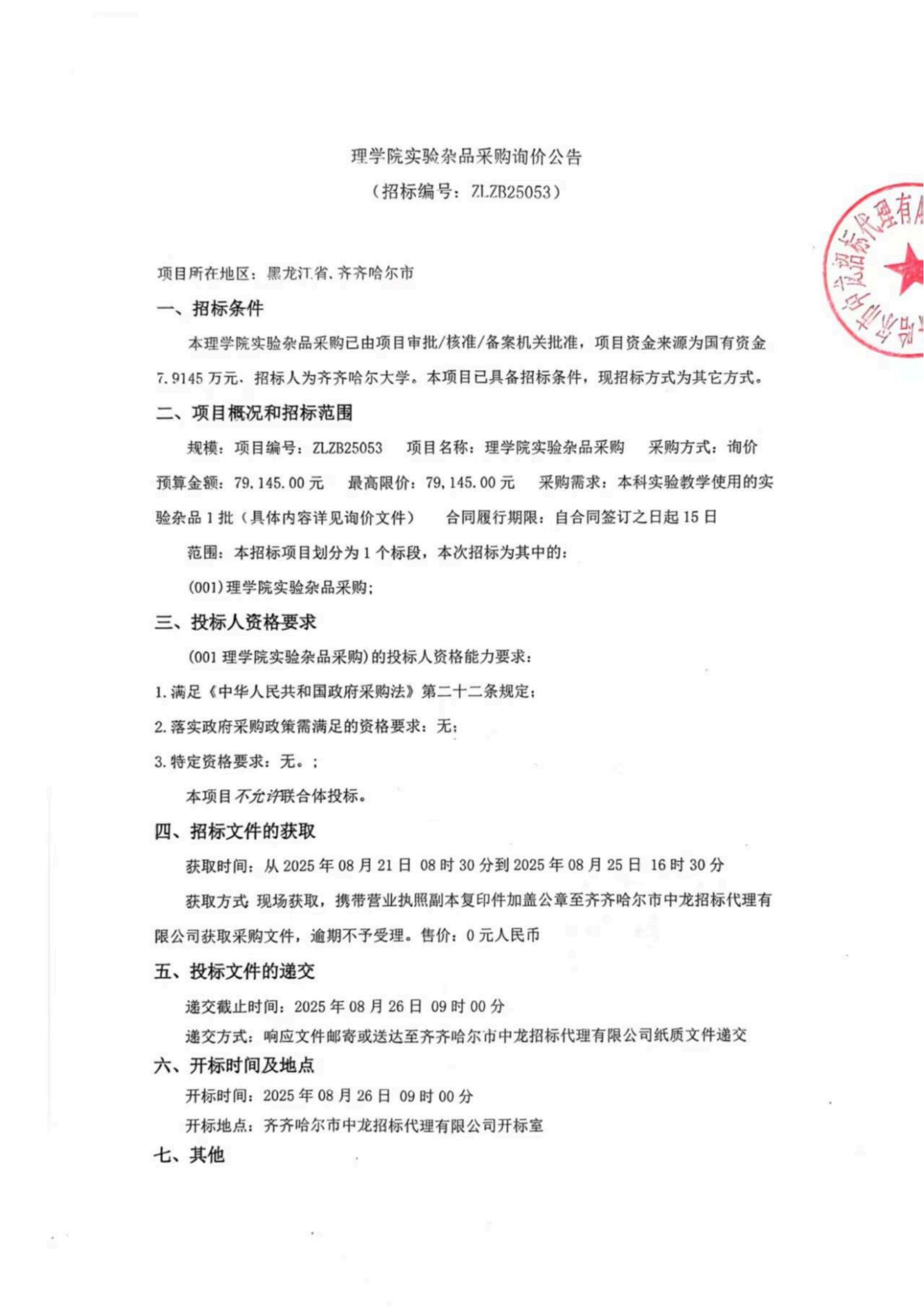 下一條:齊齊哈爾大學2025年校區(qū)急需維修項目-室內(nèi)零星等維修項目(第3次)比價采購結(jié)果公告(轉(zhuǎn)自黑龍江省政府采購網(wǎng))