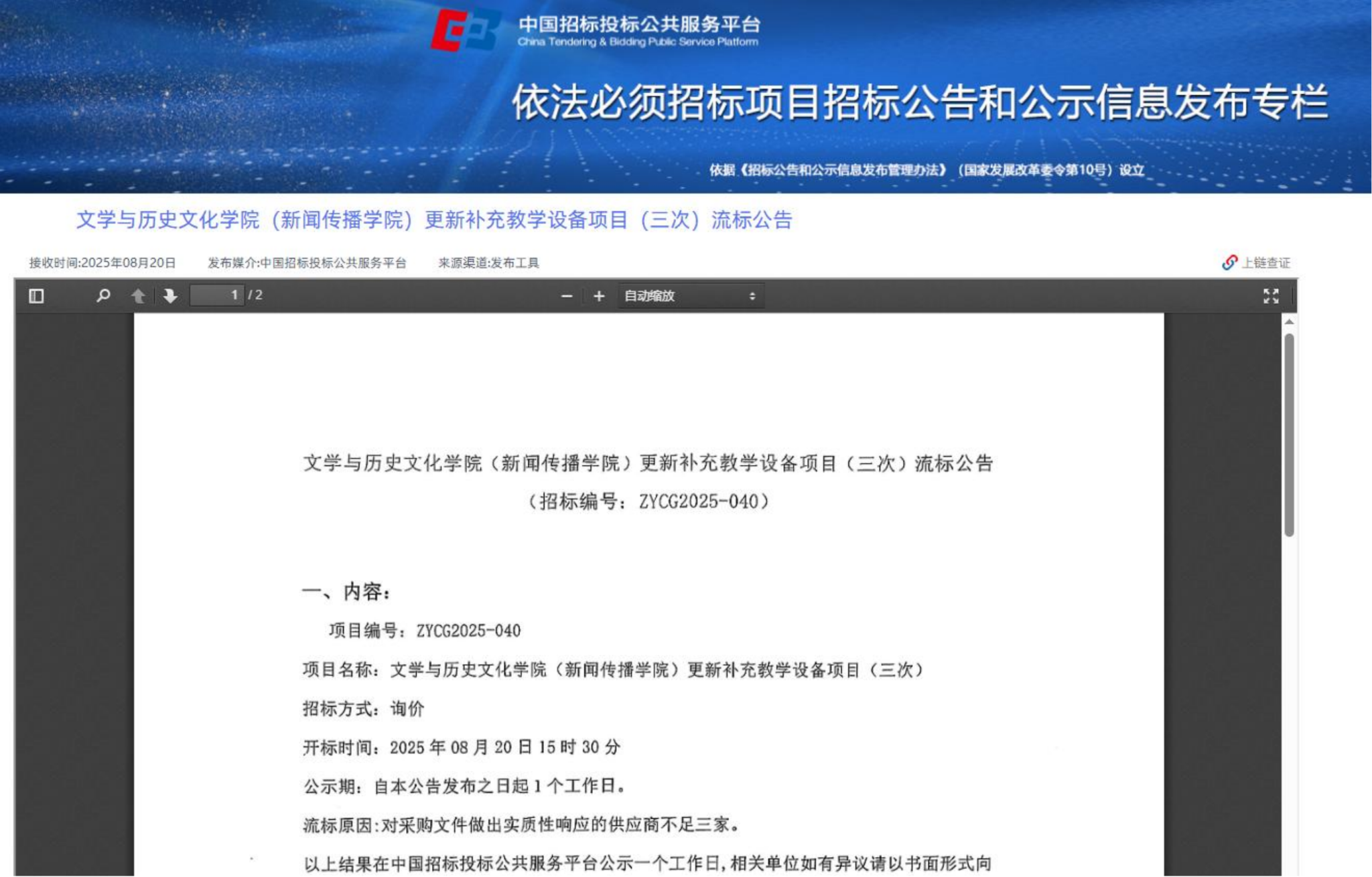 下一條:體育學院更新補充教學設備項目(三次)中標結果公示(轉自中國招標投標公共服務平臺)