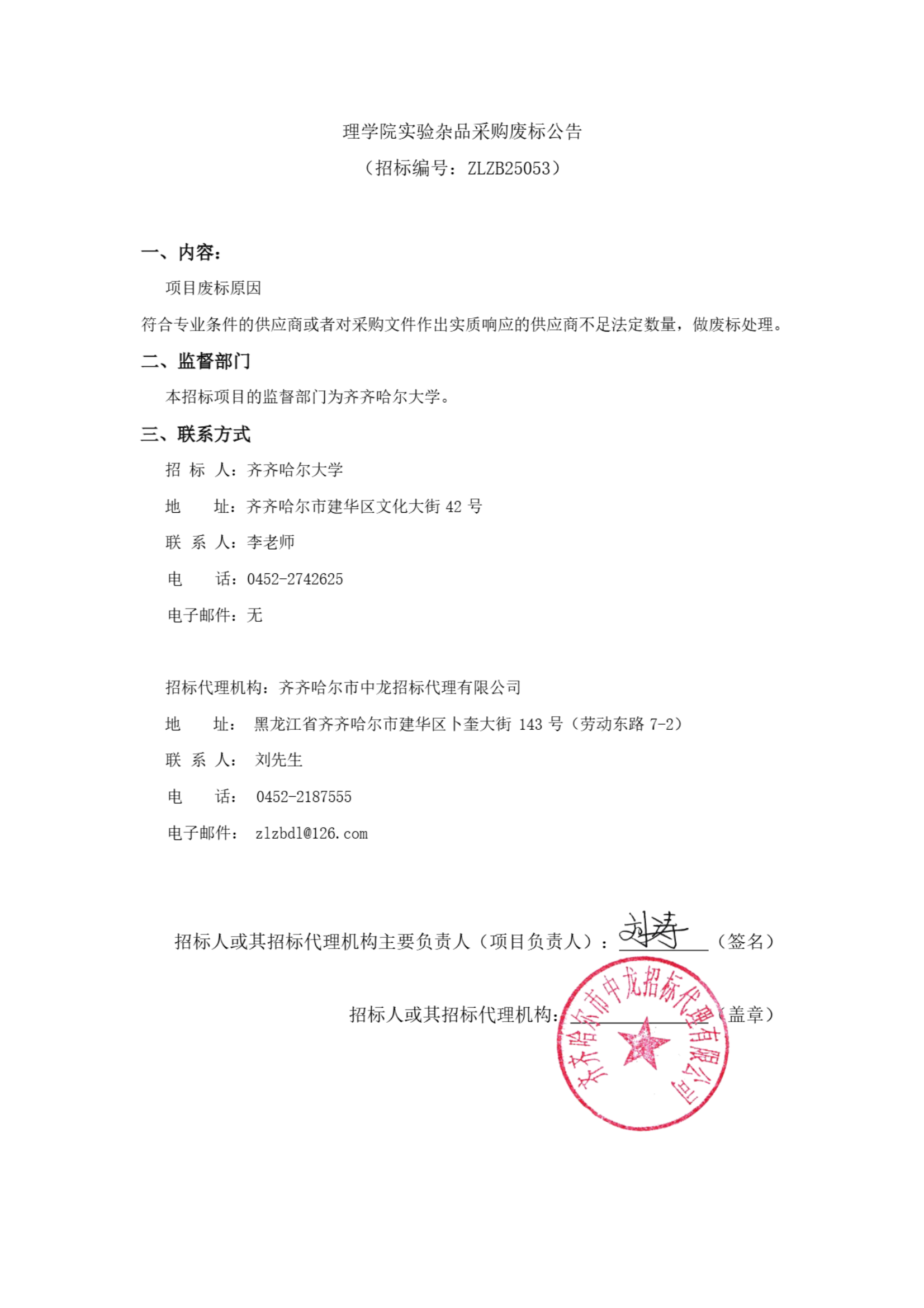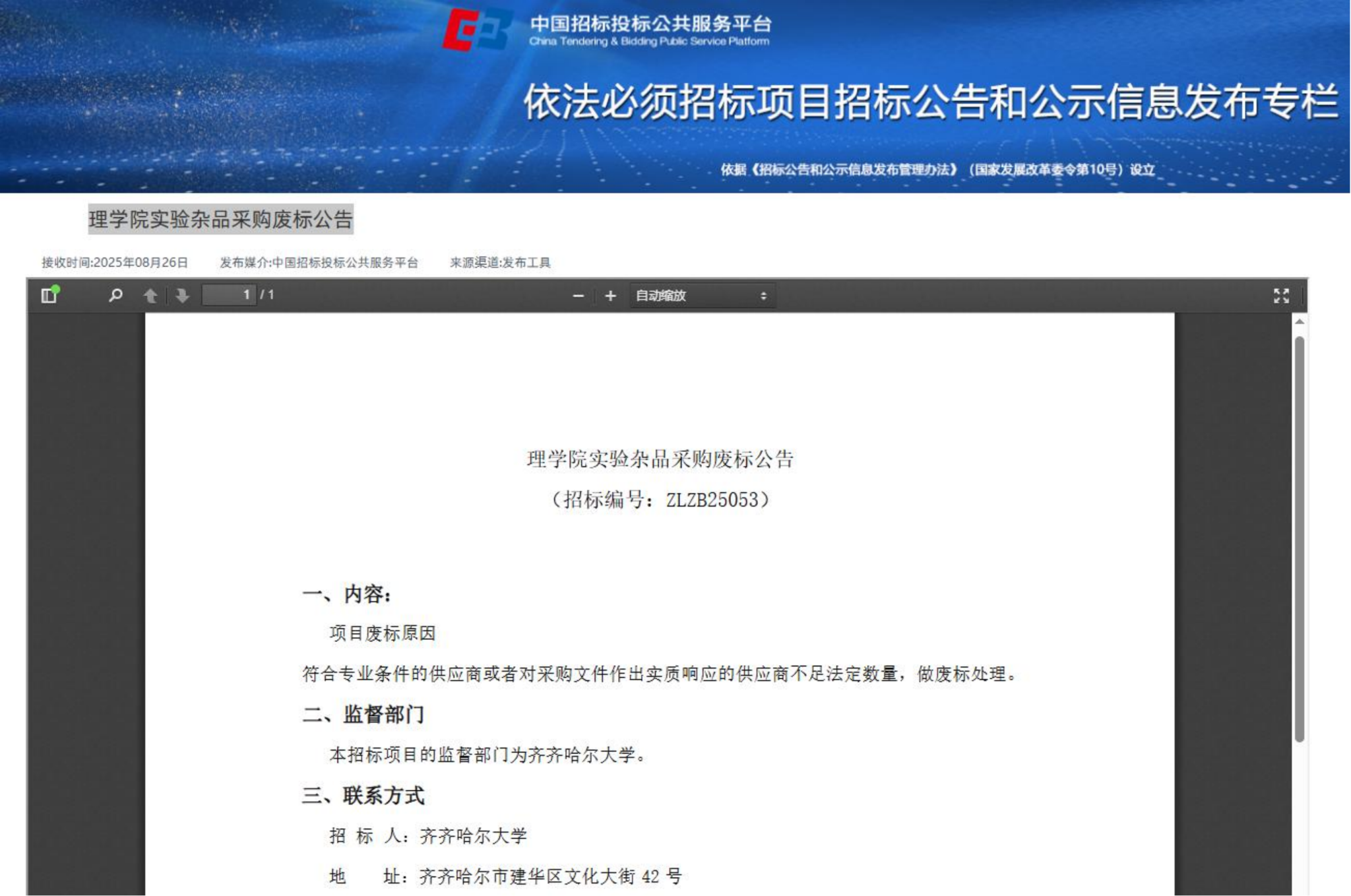 上一條:理學院實驗雜品采購(二次)詢價公告(轉自中國招標投標公共服務平臺)