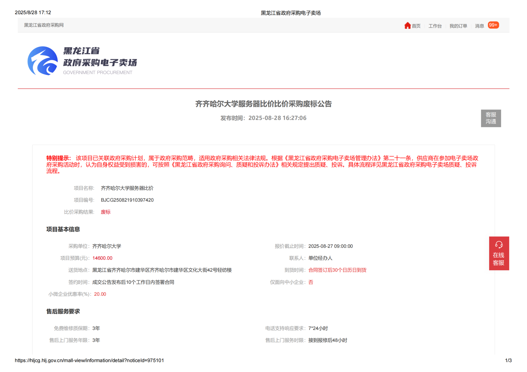下一條:齊齊哈爾大學(xué)服務(wù)器比價采購需求公告(轉(zhuǎn)自黑龍江省政府采購網(wǎng))