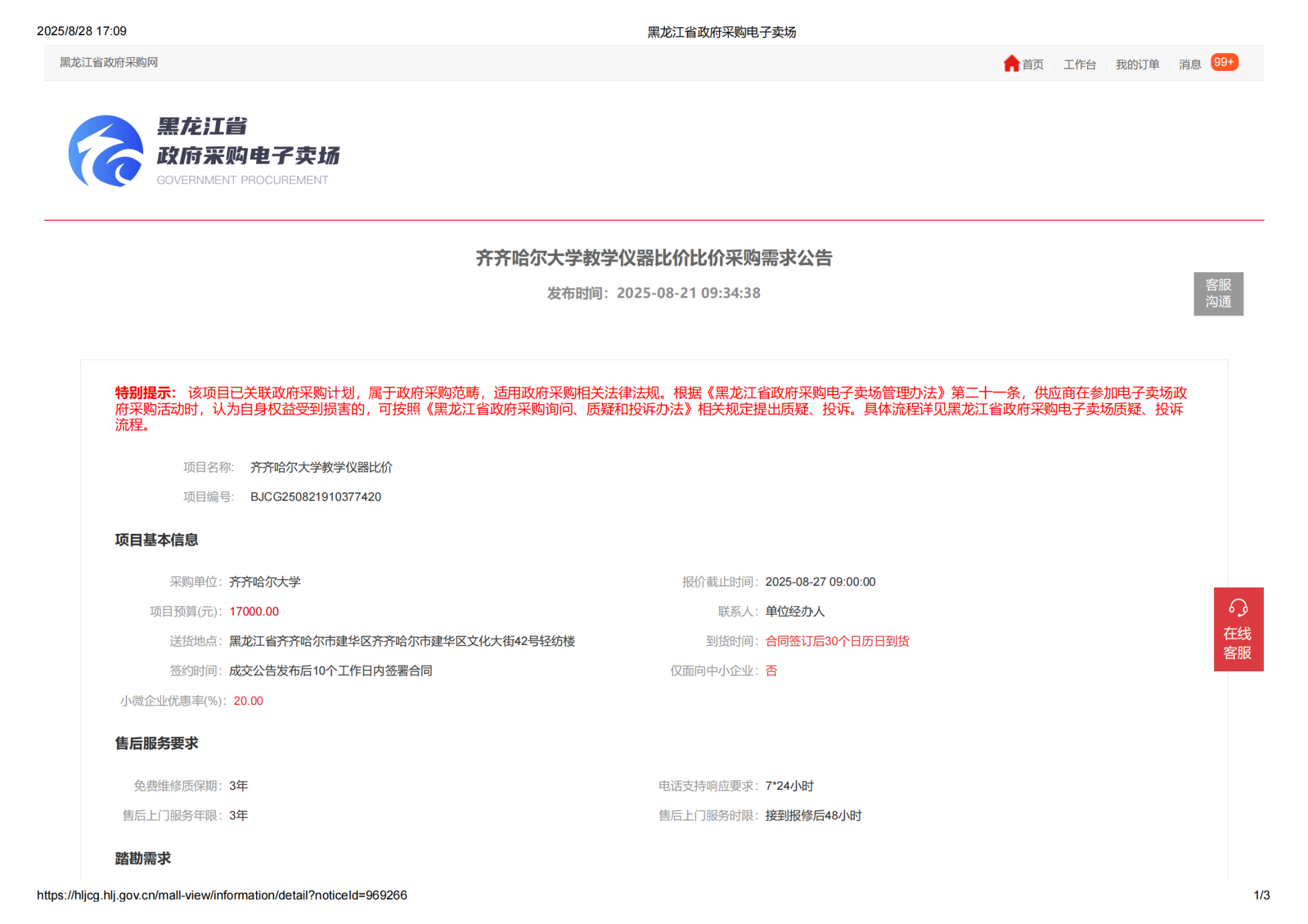上一條:齊齊哈爾大學教學儀器比價采購廢標公告(轉(zhuǎn)自黑龍江省政府采購網(wǎng))