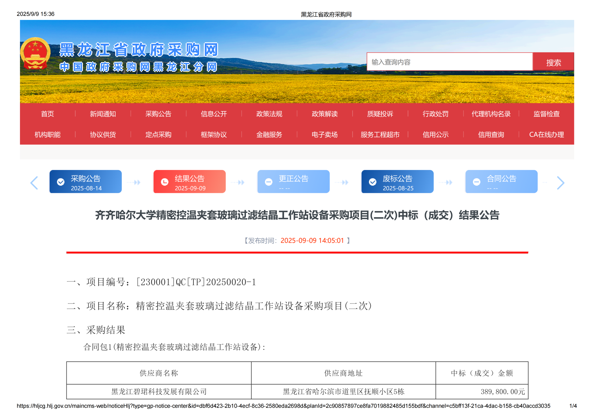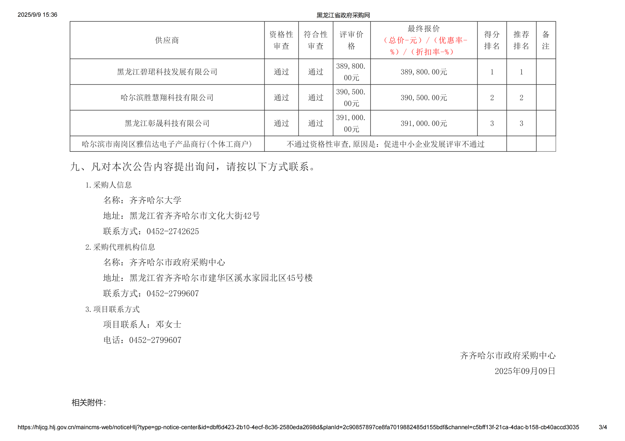 上一條:齊齊哈爾大學(xué)理學(xué)院更新補充教學(xué)設(shè)備項目(三次)中標(biāo)(成交)結(jié)果公告(轉(zhuǎn)自黑龍江省政府采購網(wǎng))