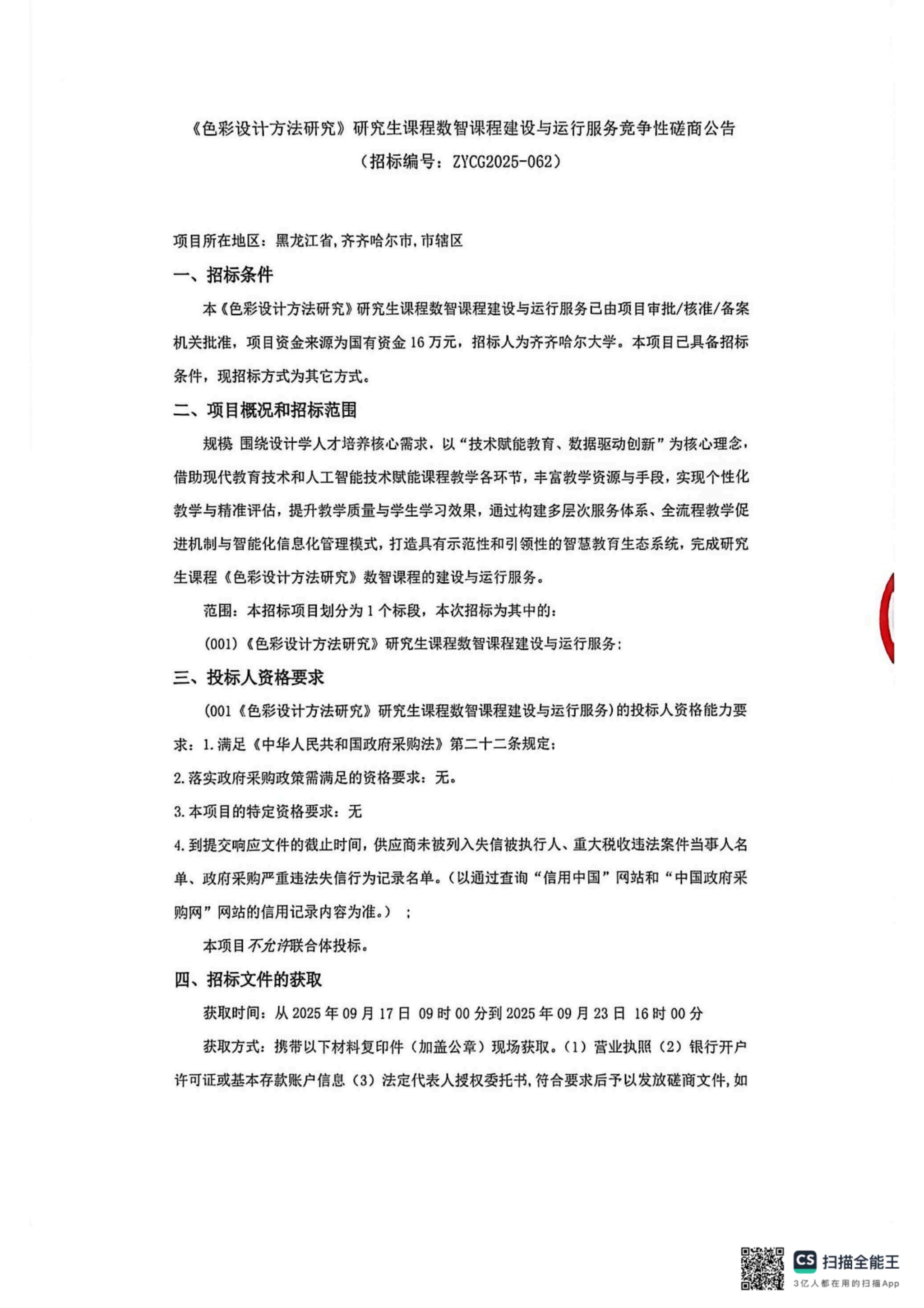 下一條:齊齊哈爾大學(xué)食品與生物工程學(xué)院更新補(bǔ)充教學(xué)設(shè)備項目競爭性談判公告(轉(zhuǎn)自黑龍江省政府采購網(wǎng))