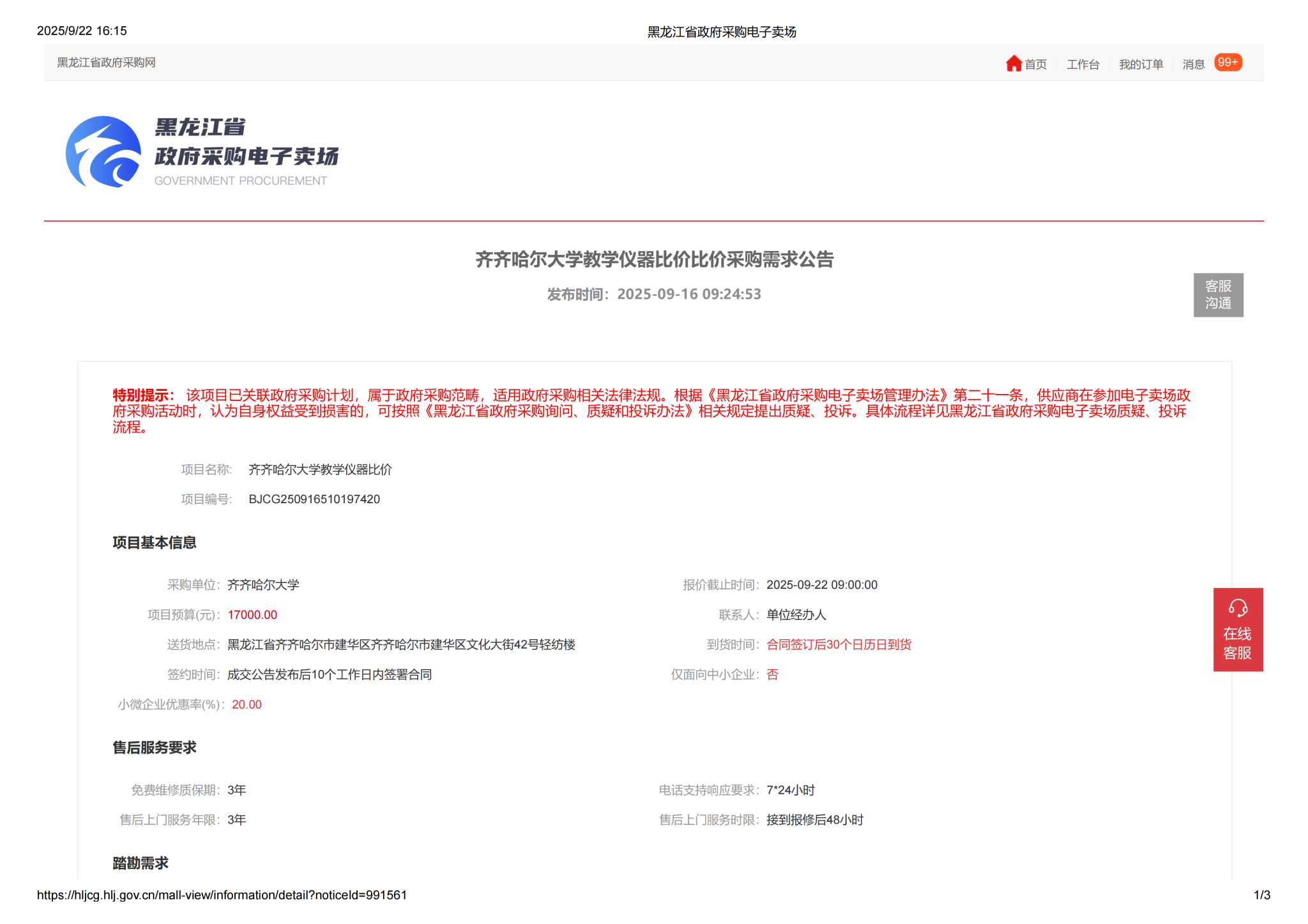 下一條:齊齊哈爾大學(xué)教學(xué)儀器比價(jià)采購(gòu)需求公告(三次)(轉(zhuǎn)自黑龍江省政府采購(gòu)網(wǎng))
